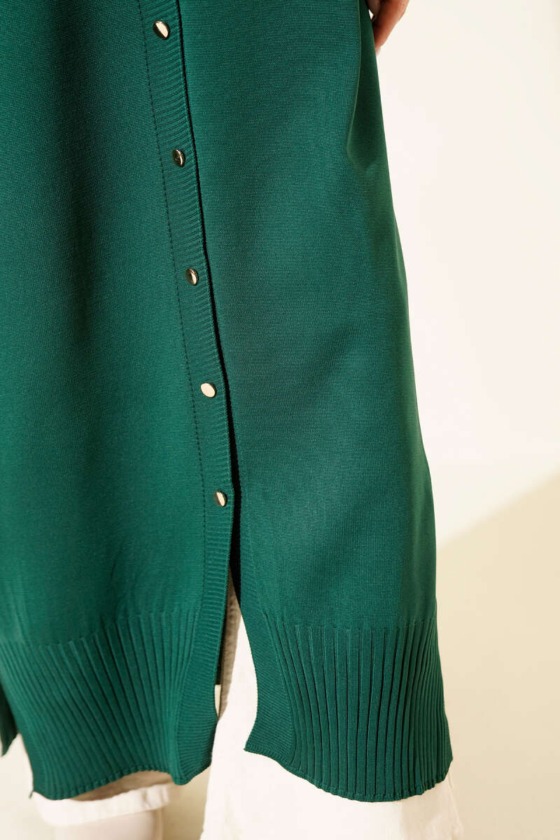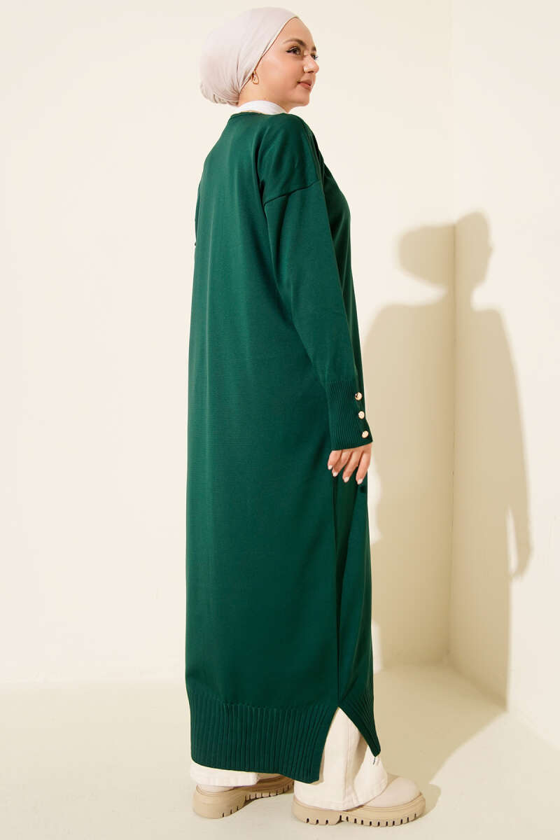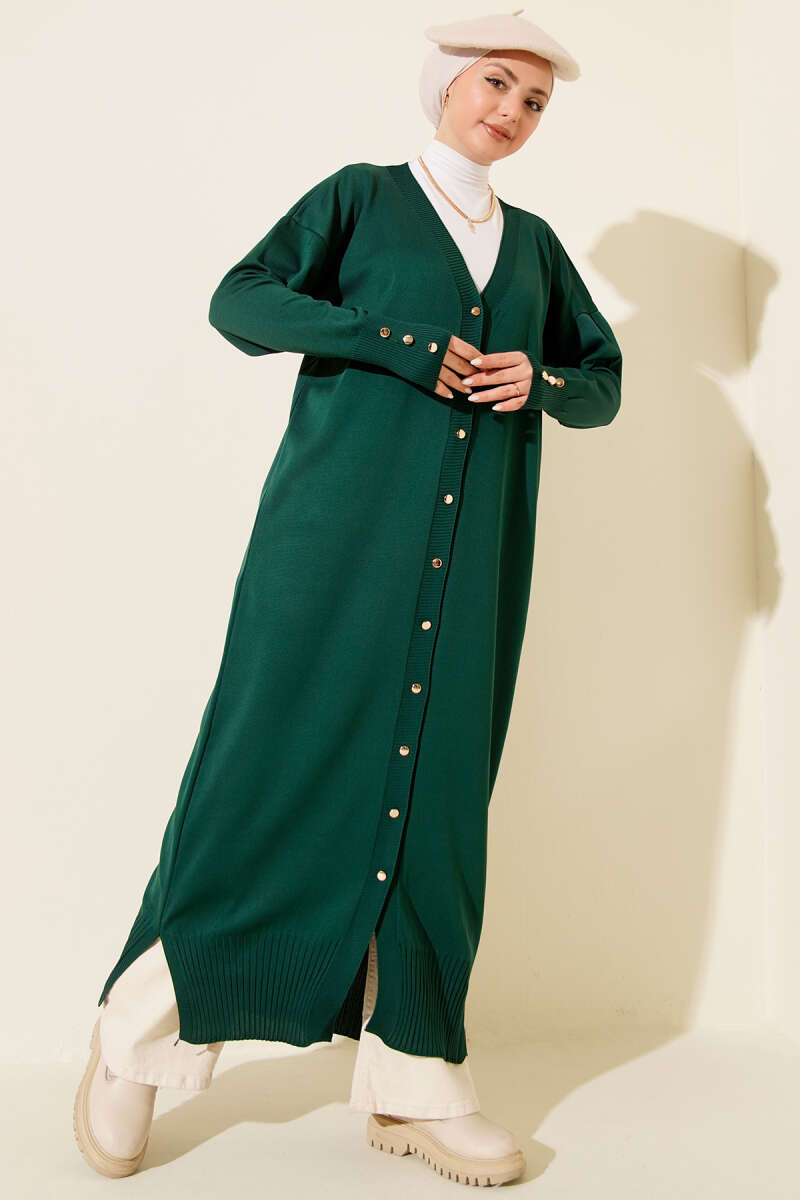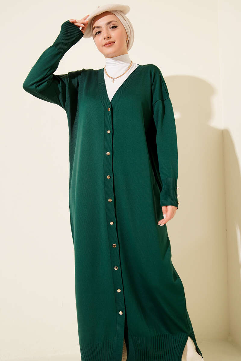 Düğmeli Uzun Merserize Hırka Zümrüt
