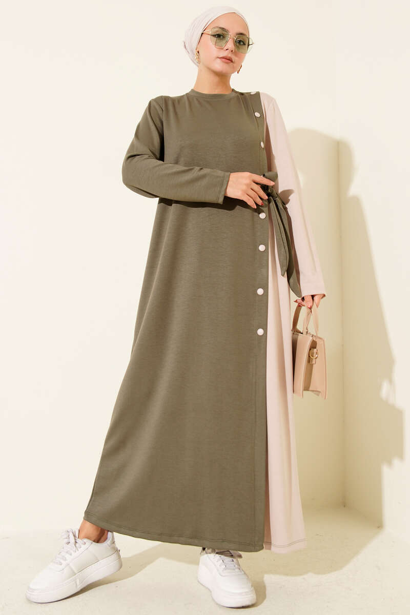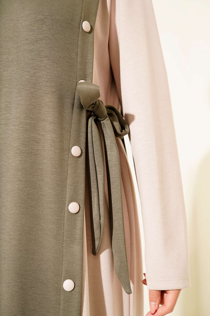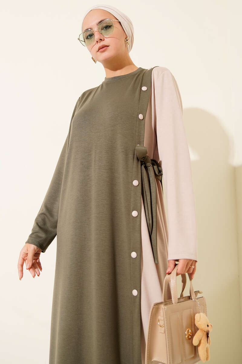 Düğmeli Yandan Bağlamalı Bisiklet Yaka Elbise Bordo