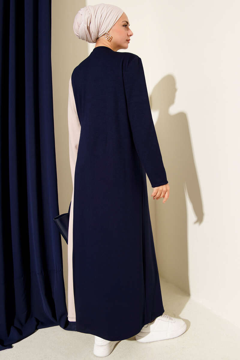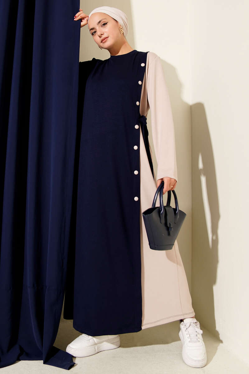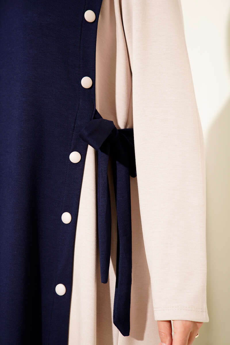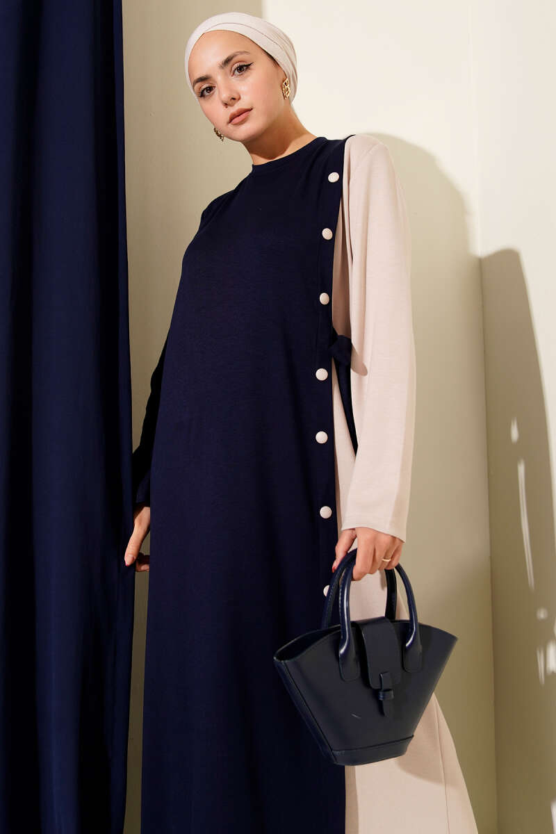Gömlek Yaka Düğmeli Üç İplik Elbise Lacivert