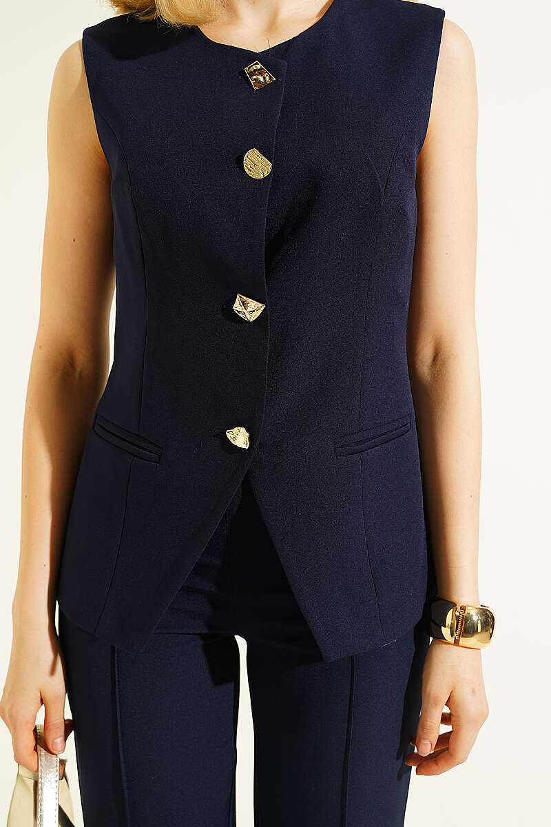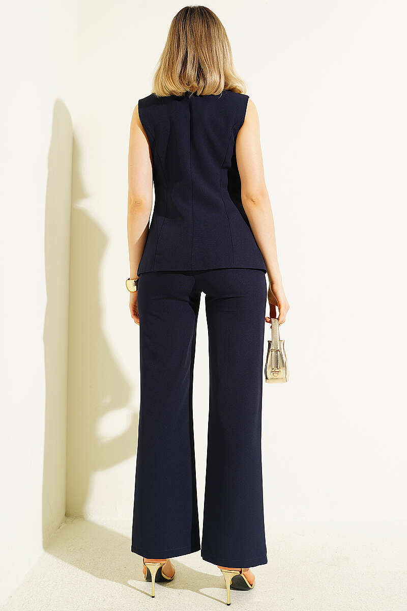 Düğmeli Yelekli Pantolon Takım Lacivert