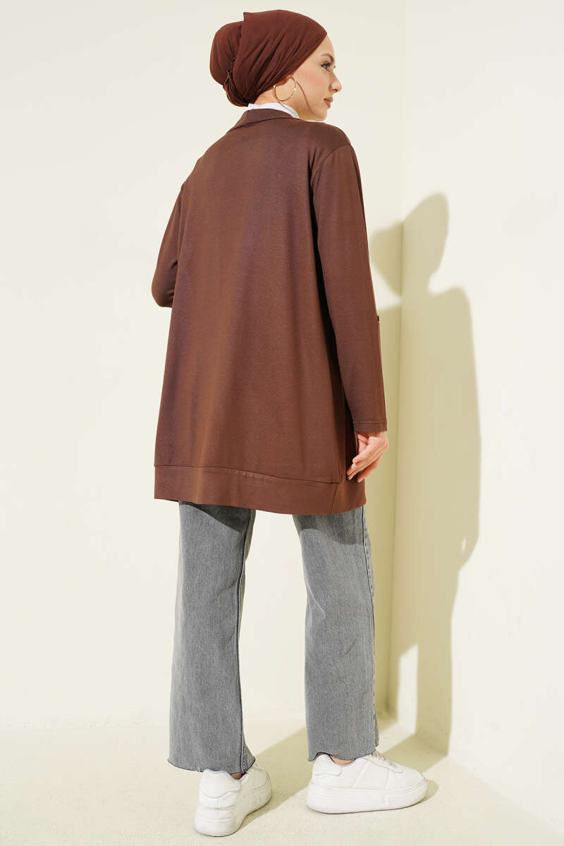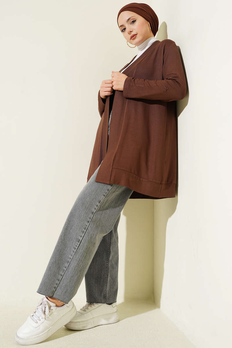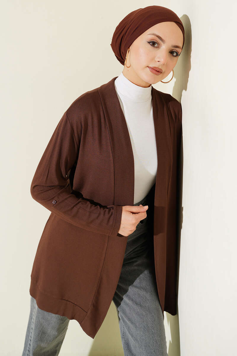 Sarmal Desen Detaylı Triko Hırka Kahve