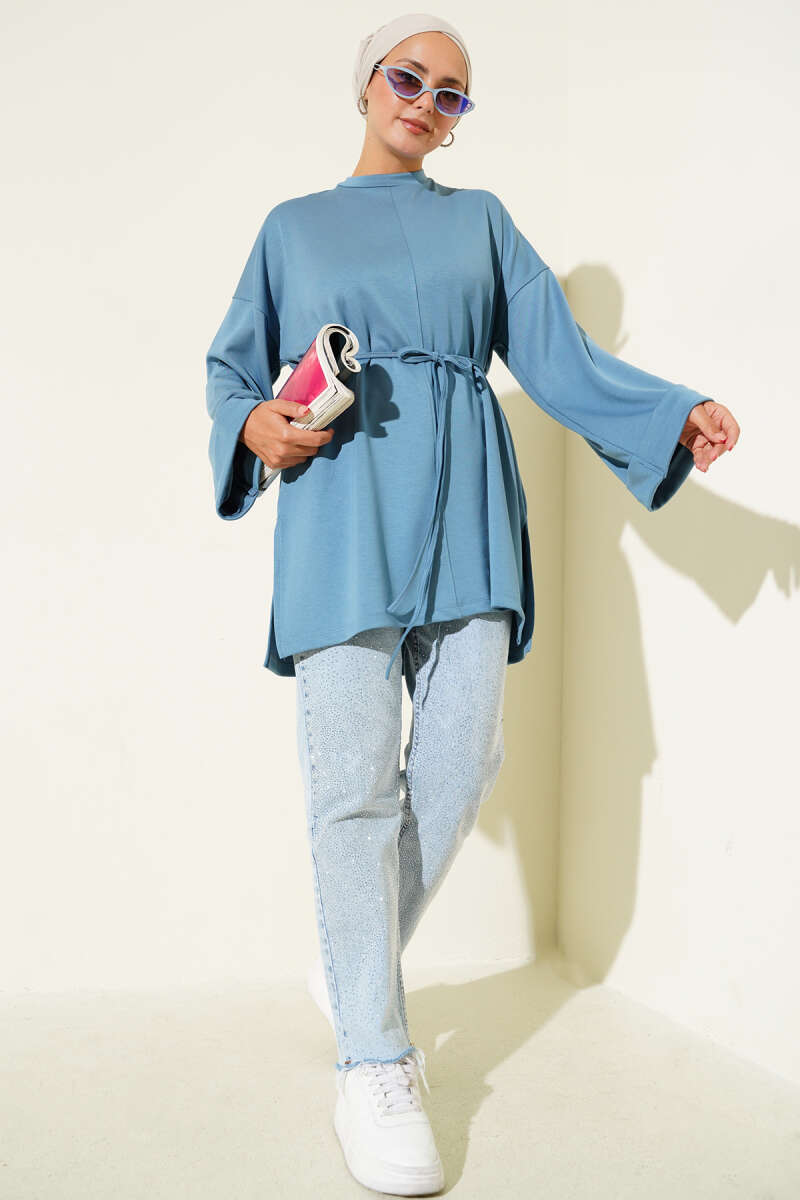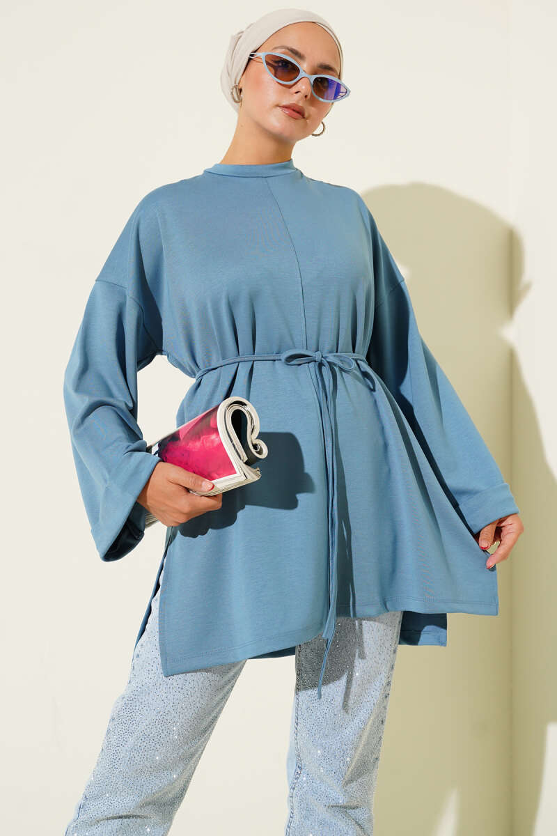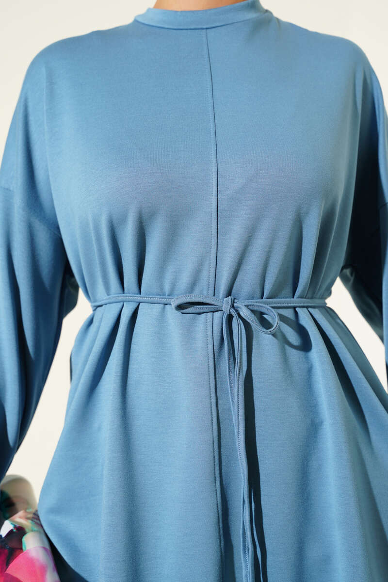 Düşük Duble Kol Tunik İndigo