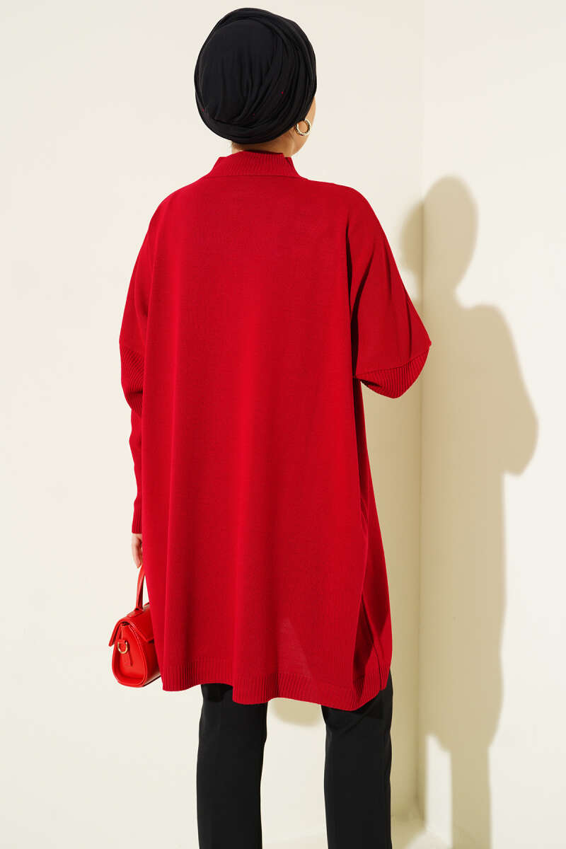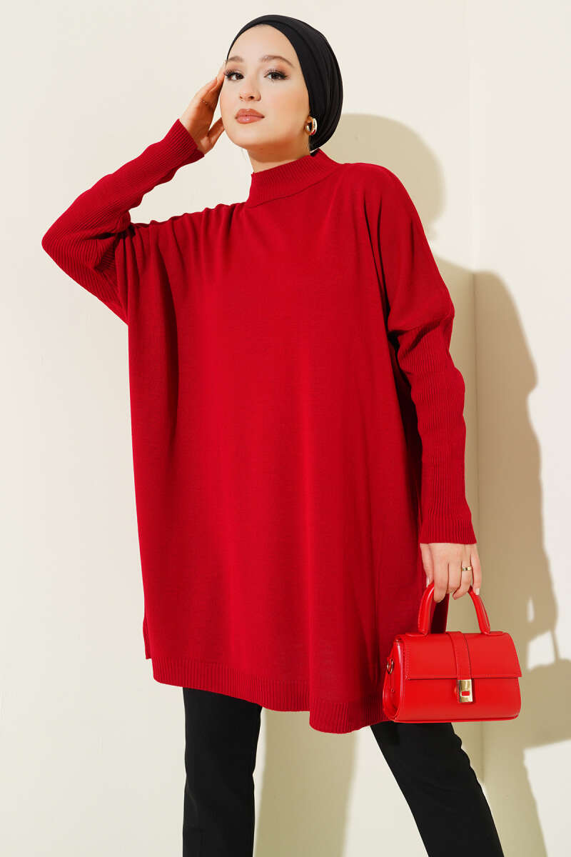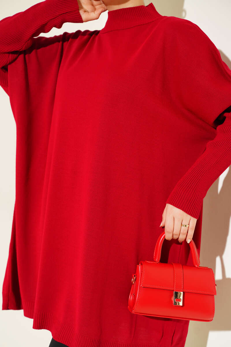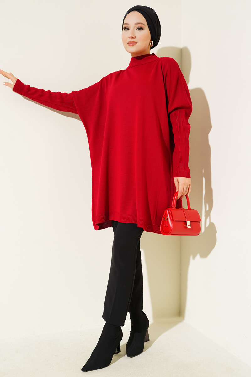 Gömlek Yaka Fularlı Triko Tunik Bordo