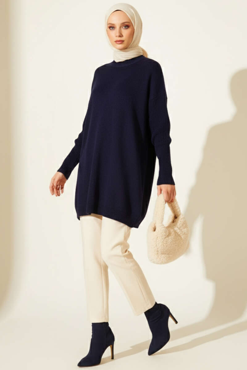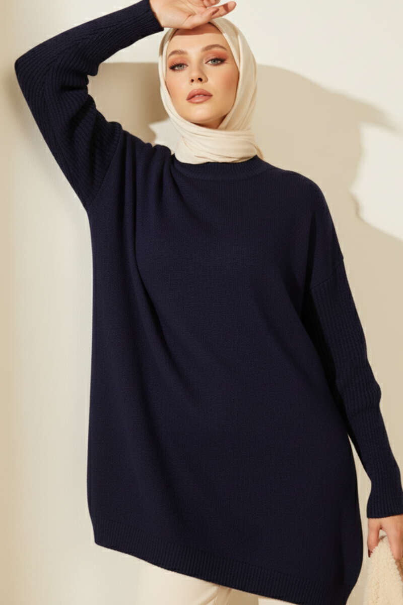 Düşük Kol Detaylı Triko Tunik Siyah