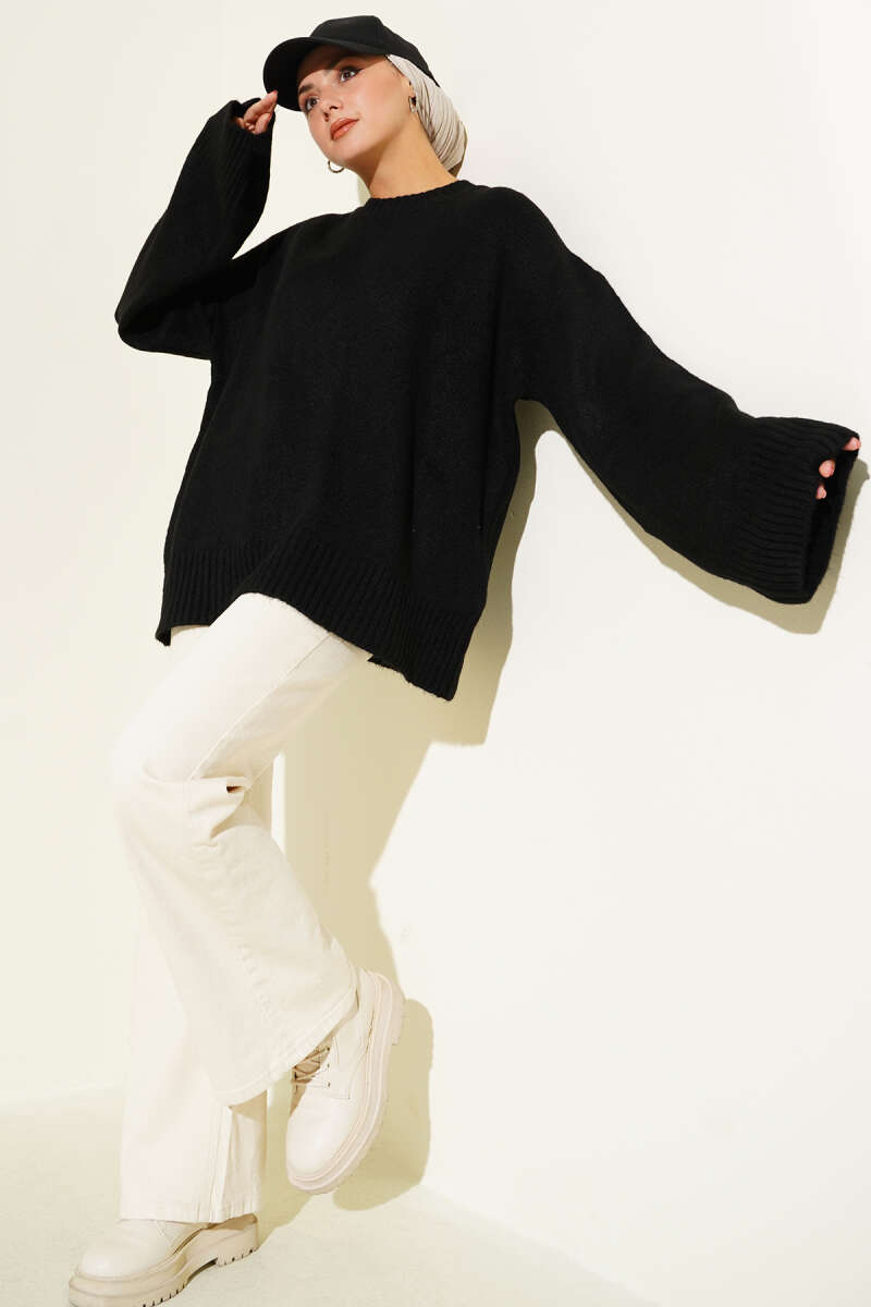 Yırtmaçlı Düz Yumoş Triko Tunik Gül Kurusu