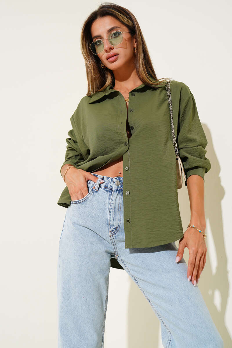 Düşük Omuz Basic Gömlek Haki