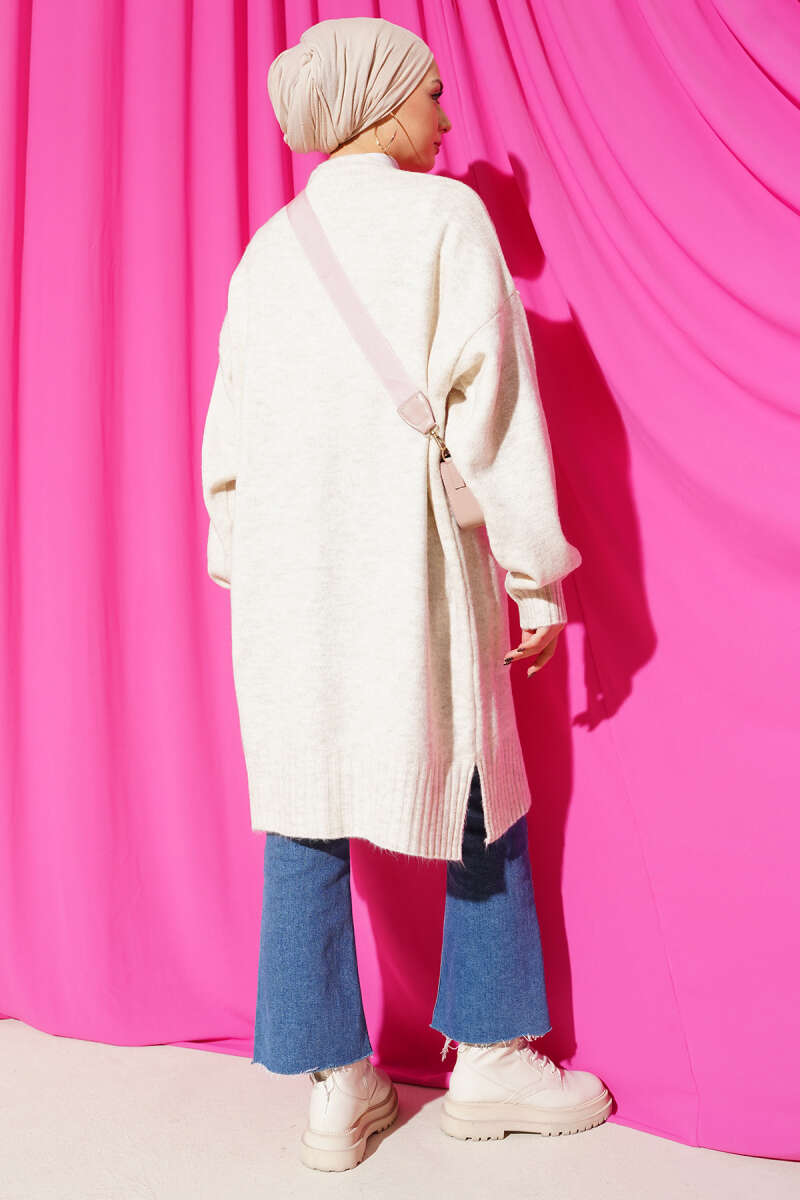 Zebra Desen Angora Detaylı Triko Hırka Latte