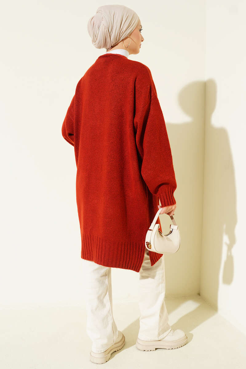 Zigzag Desenli Düğmeli Merserize Hırka Kırmızı