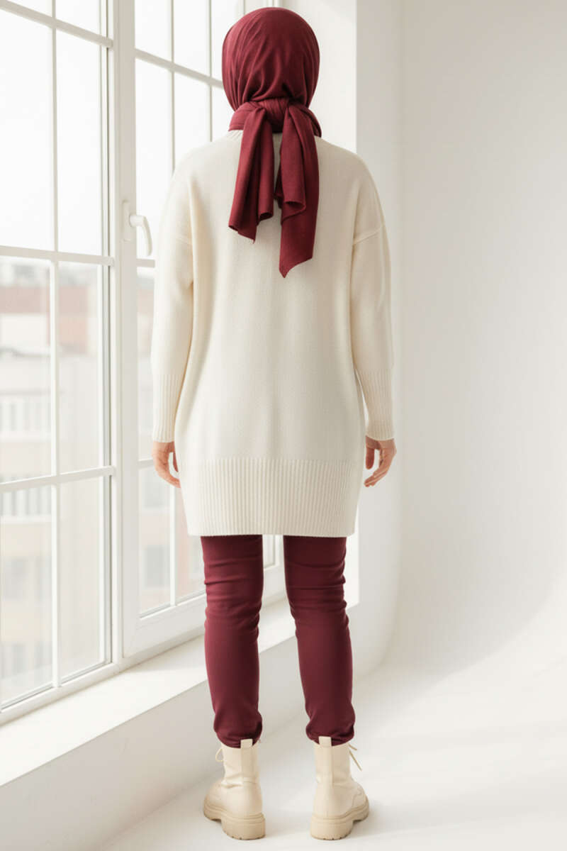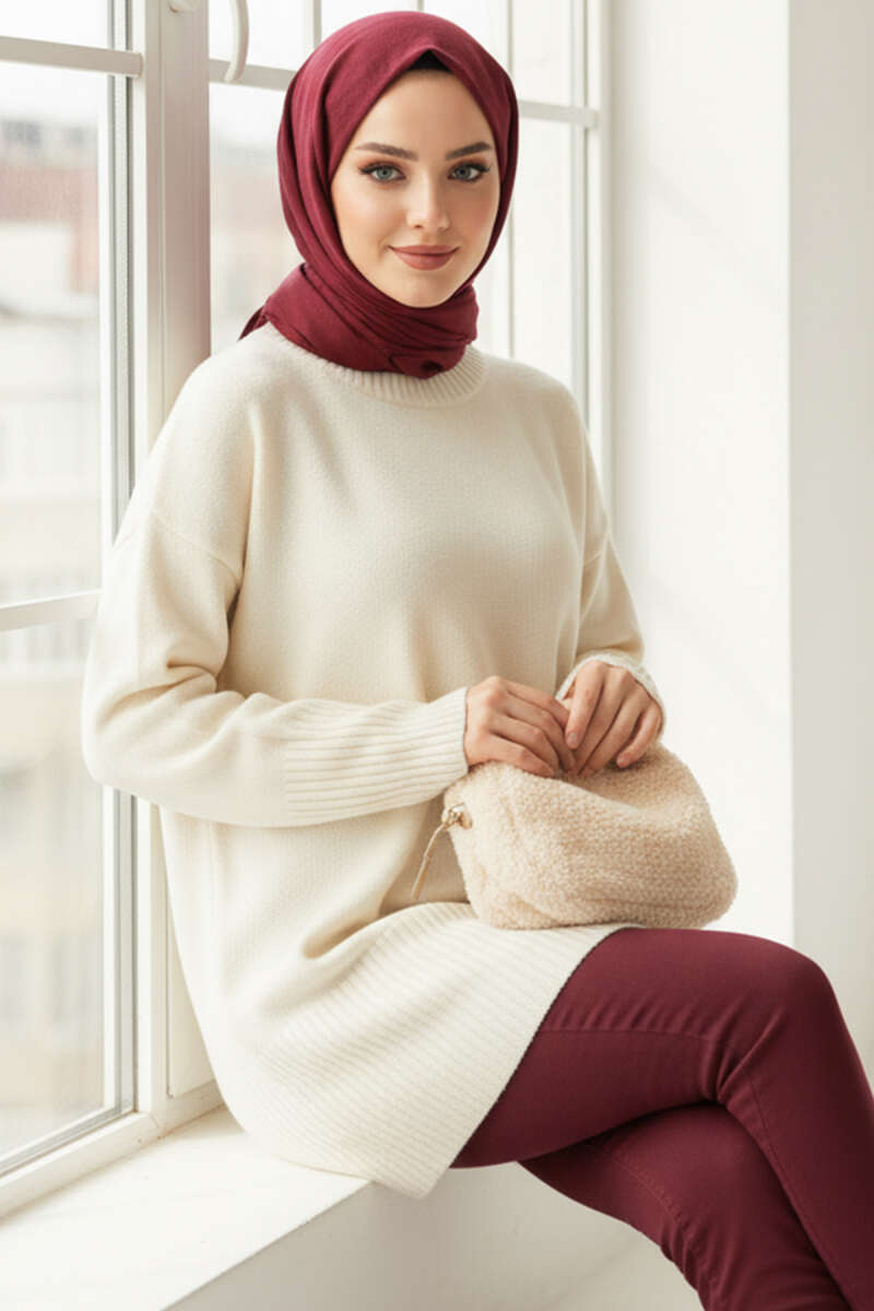 Düşük Omuz Detaylı Triko Tunik Bordo
