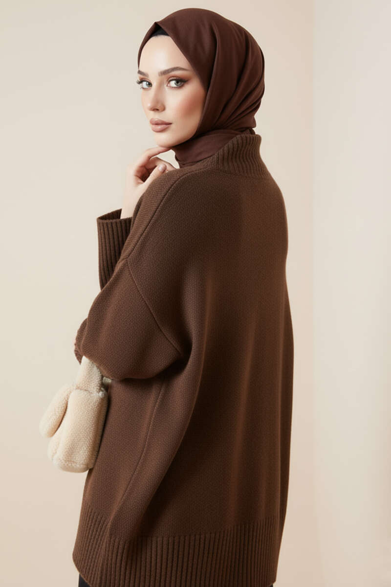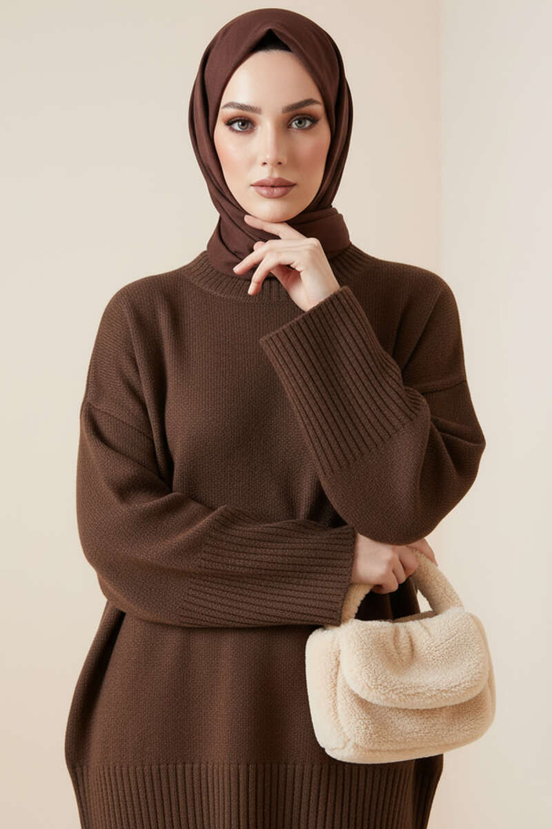 Elegance Baskılı İki İplik Tunik Kahve