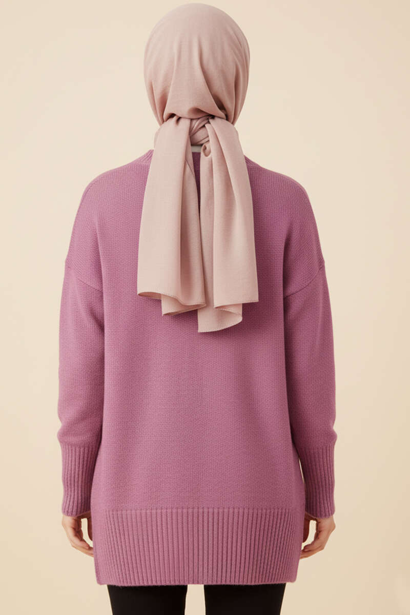 Düşük Omuz Detaylı Triko Tunik Magenta