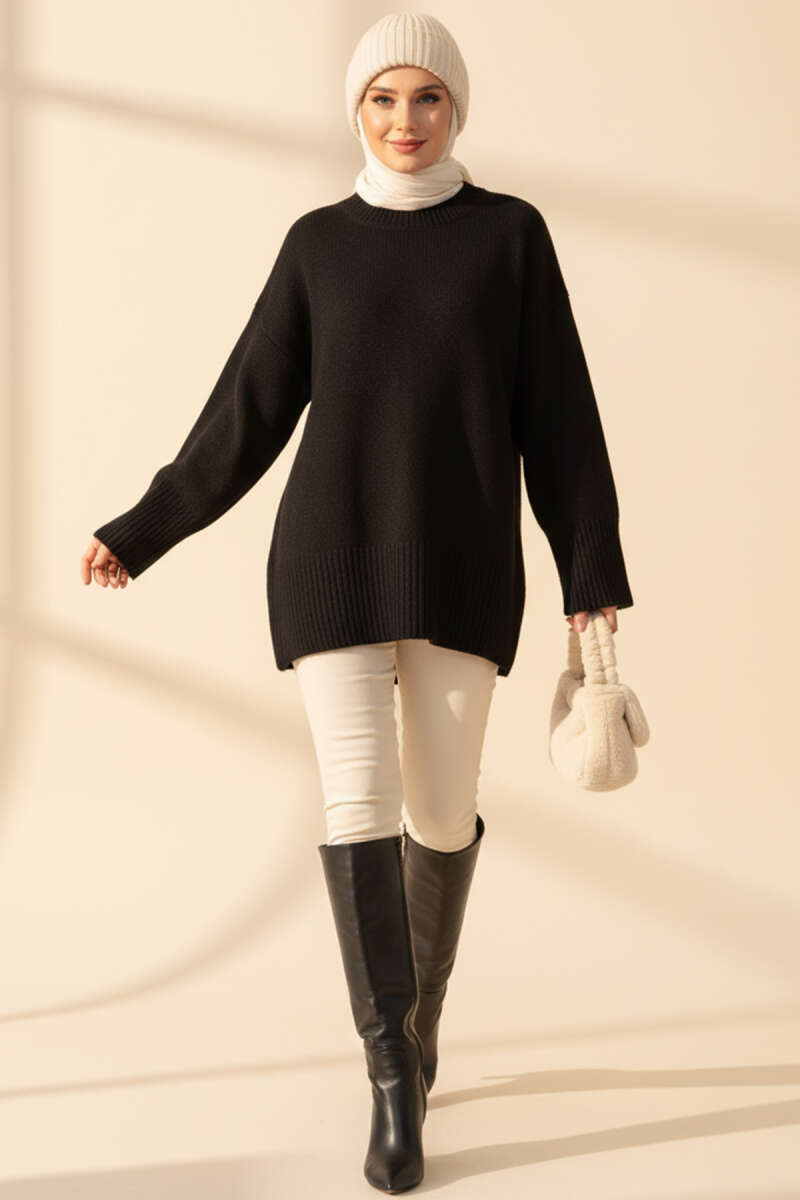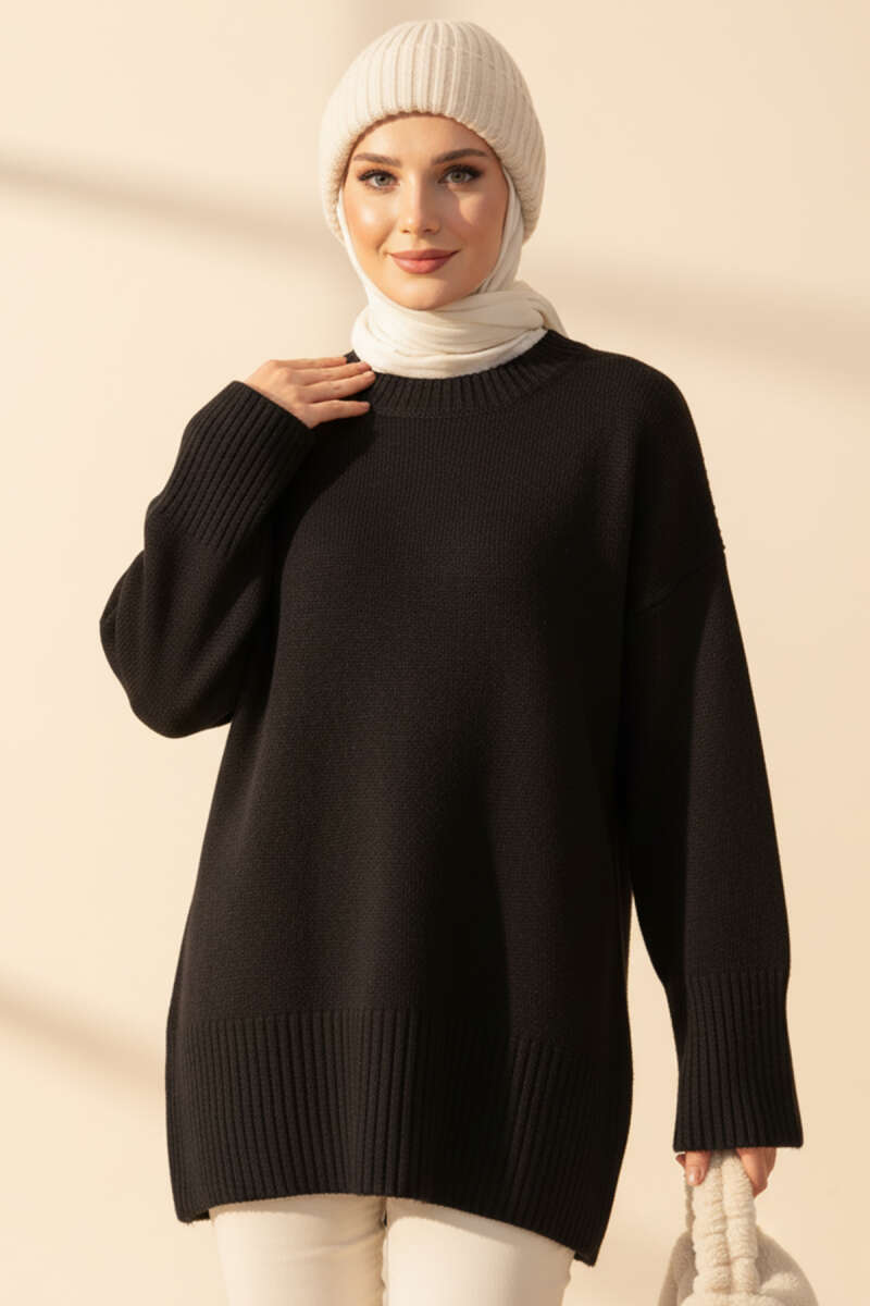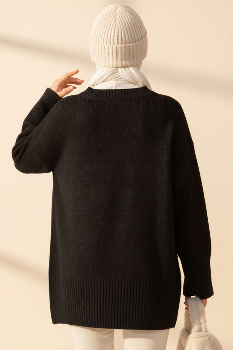 Kol Bağcık Detaylı Triko Tunik Siyah