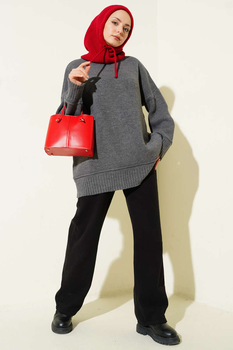Düşük Omuz Oversize Triko Tunik Füme