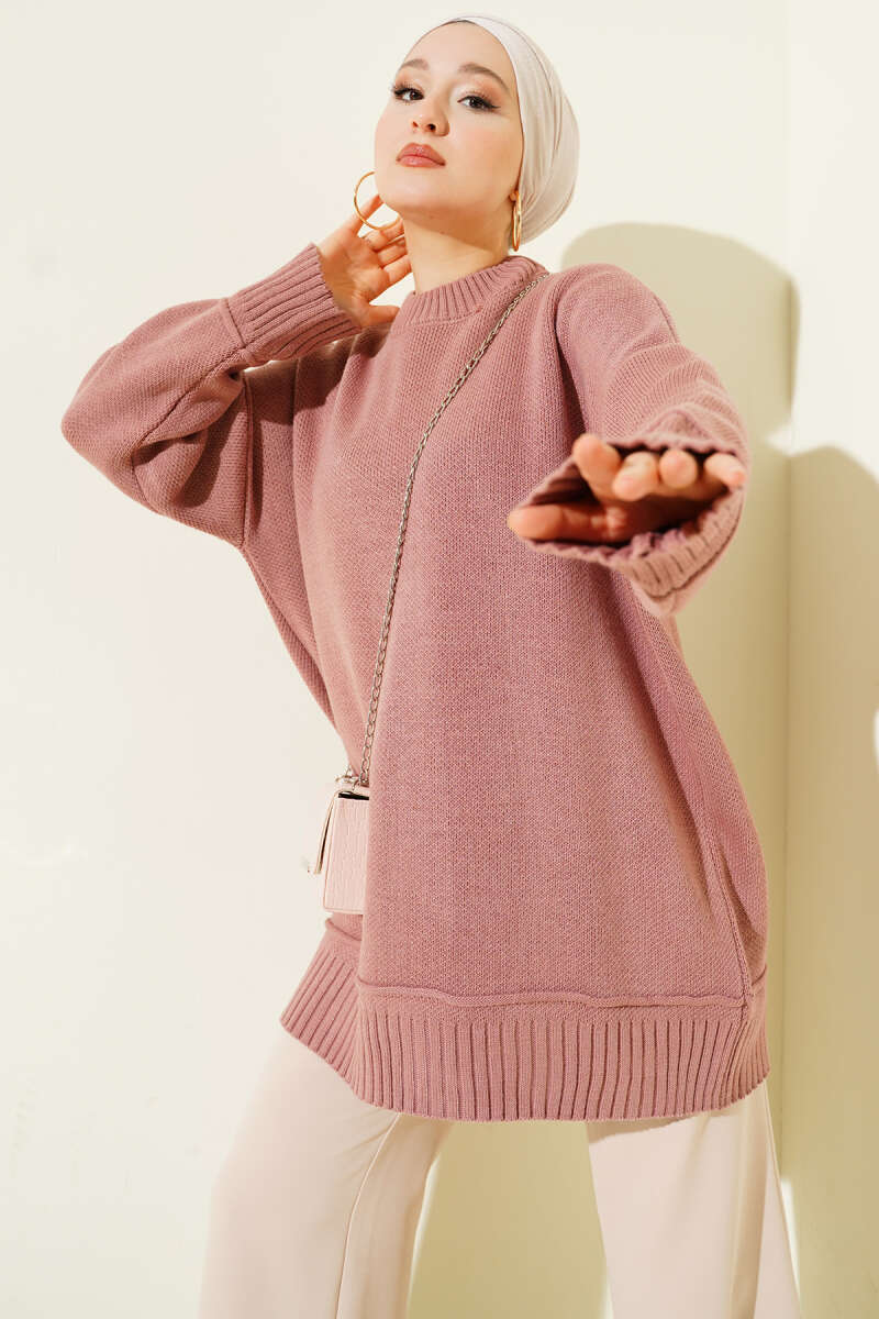 Loyşa Yan İp Bağlamalı Tunik Gül Kurusu