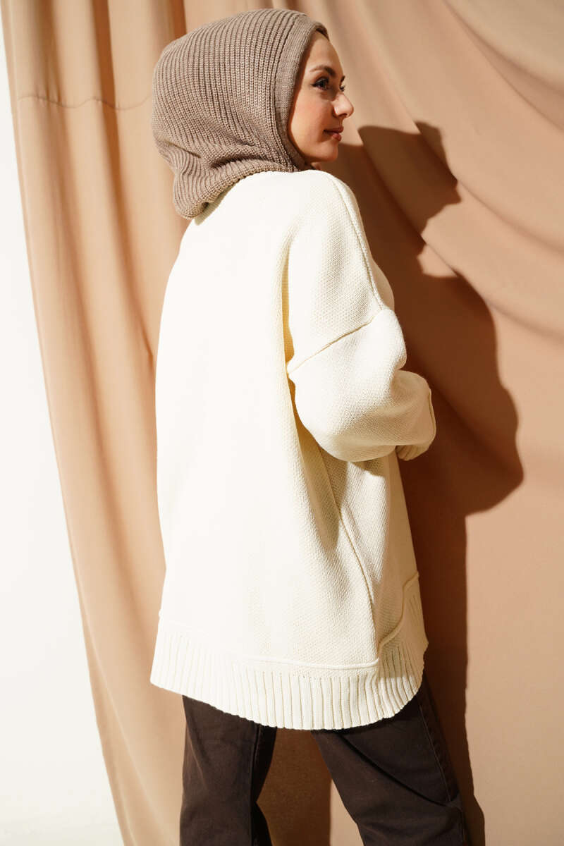 Düşük Omuz Oversize Triko Tunik Krem