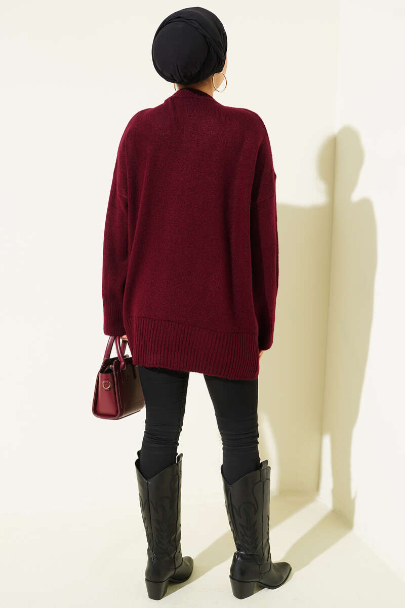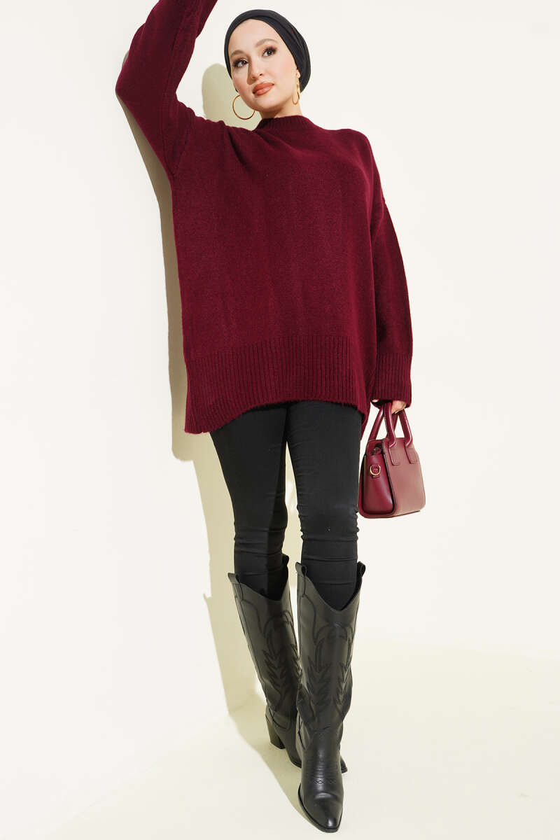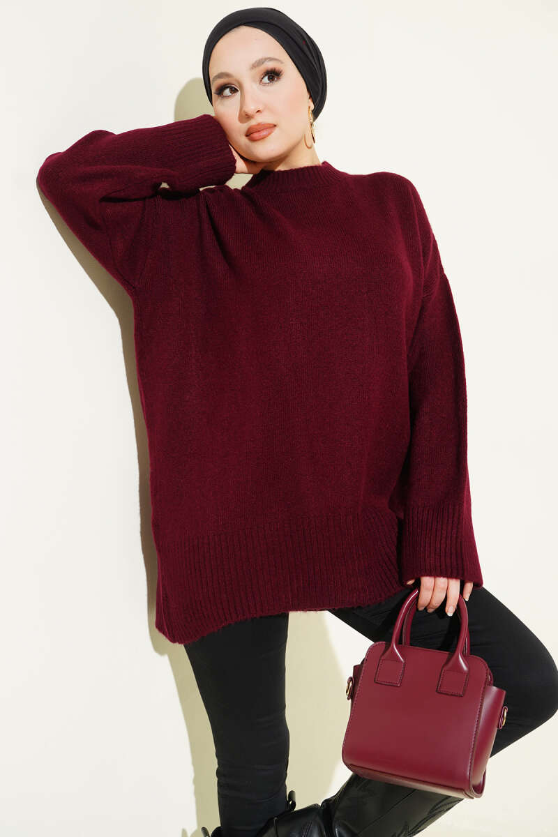 Düşük Omuz Salaş Triko Tunik Turkuaz