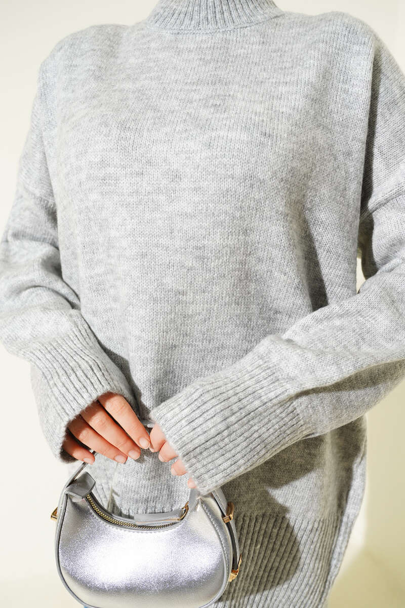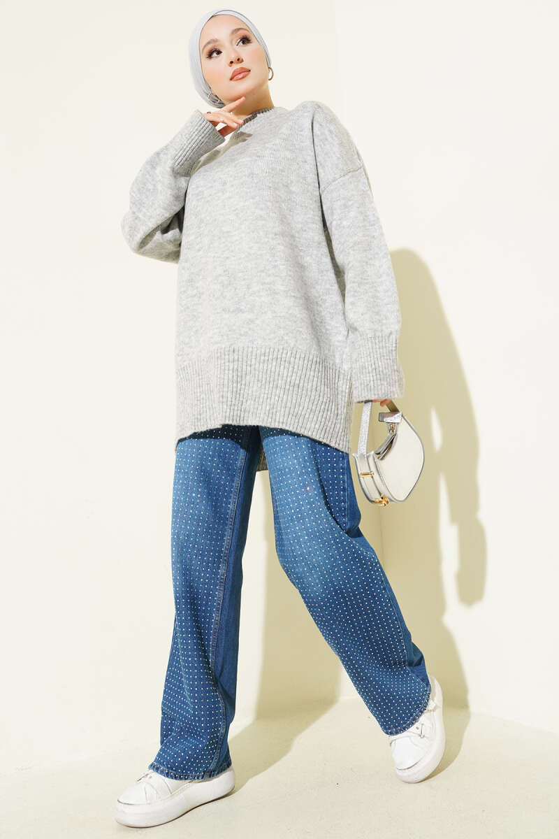 Düşük Omuz Salaş Triko Tunik Taş