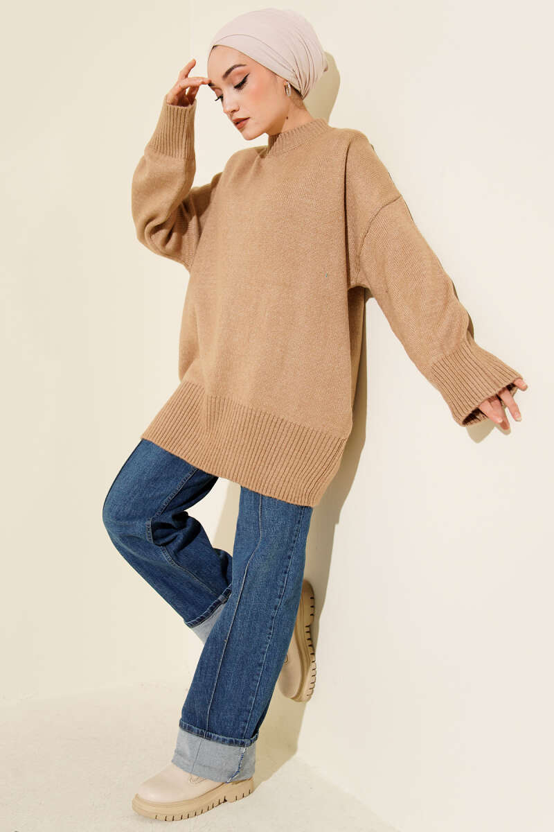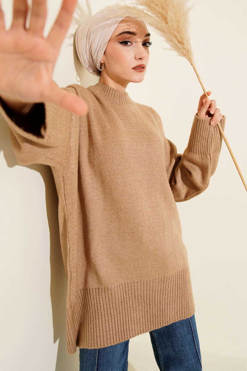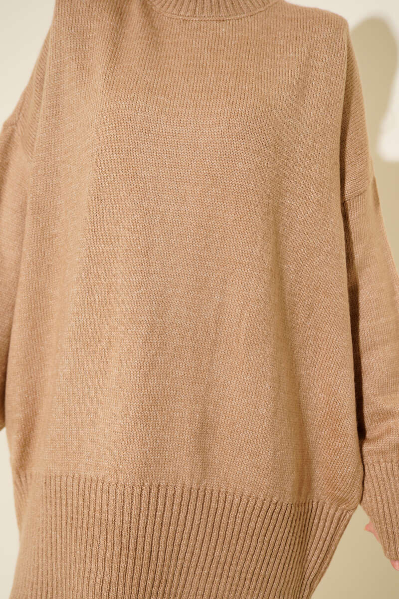 Ribana Görünümlü Triko Tunik Camel
