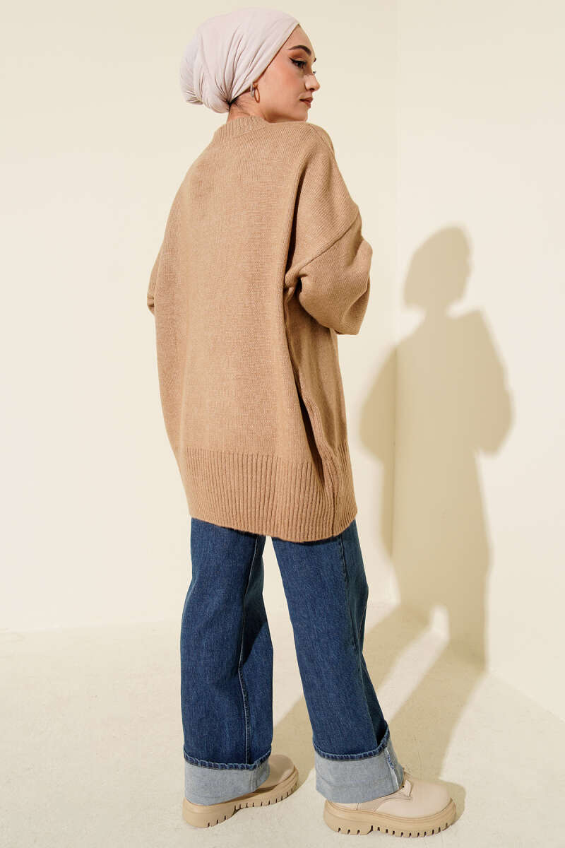Salaş Fitilli Uzun Hırka Bej