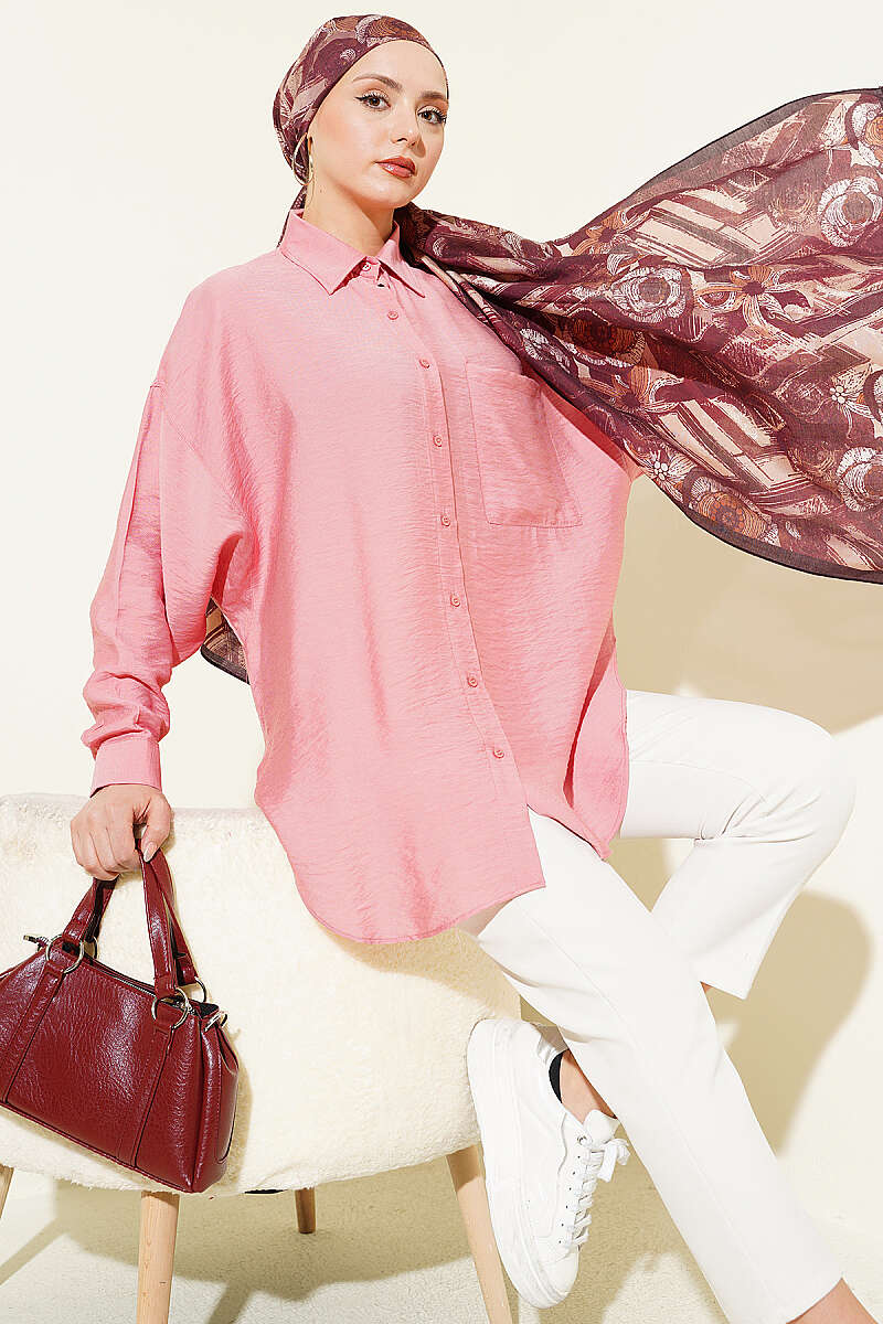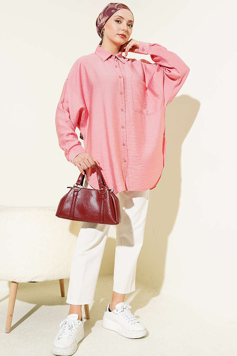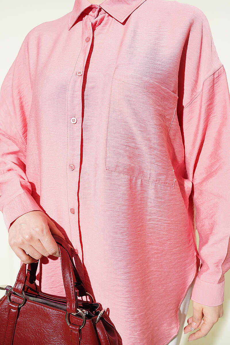 Düşük Omuzlu Tek Cepli Gömlek Pudra