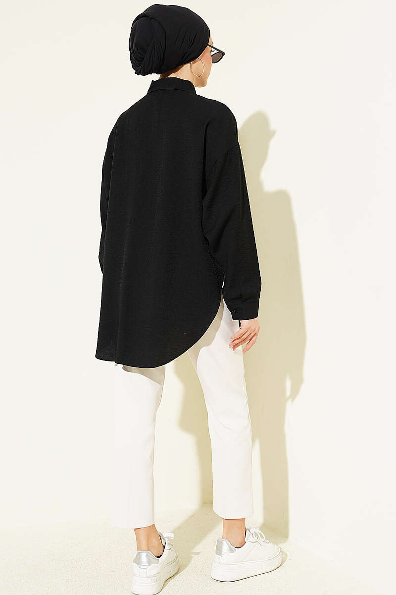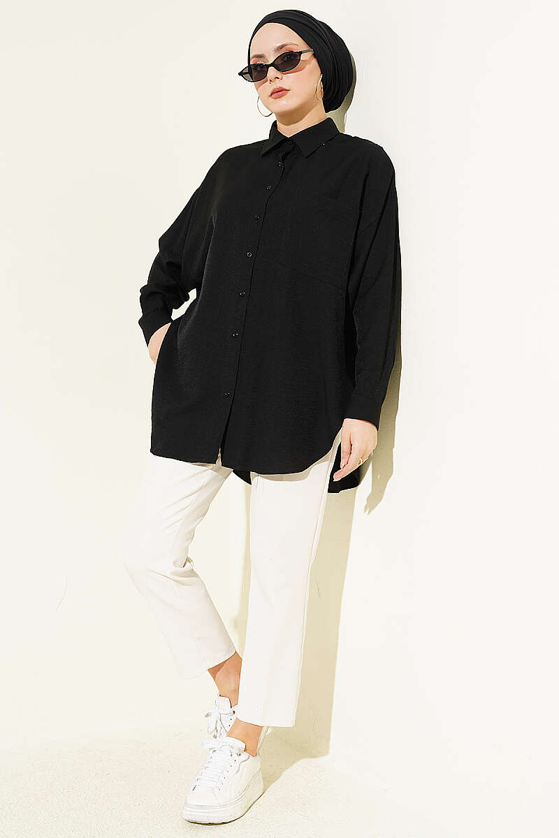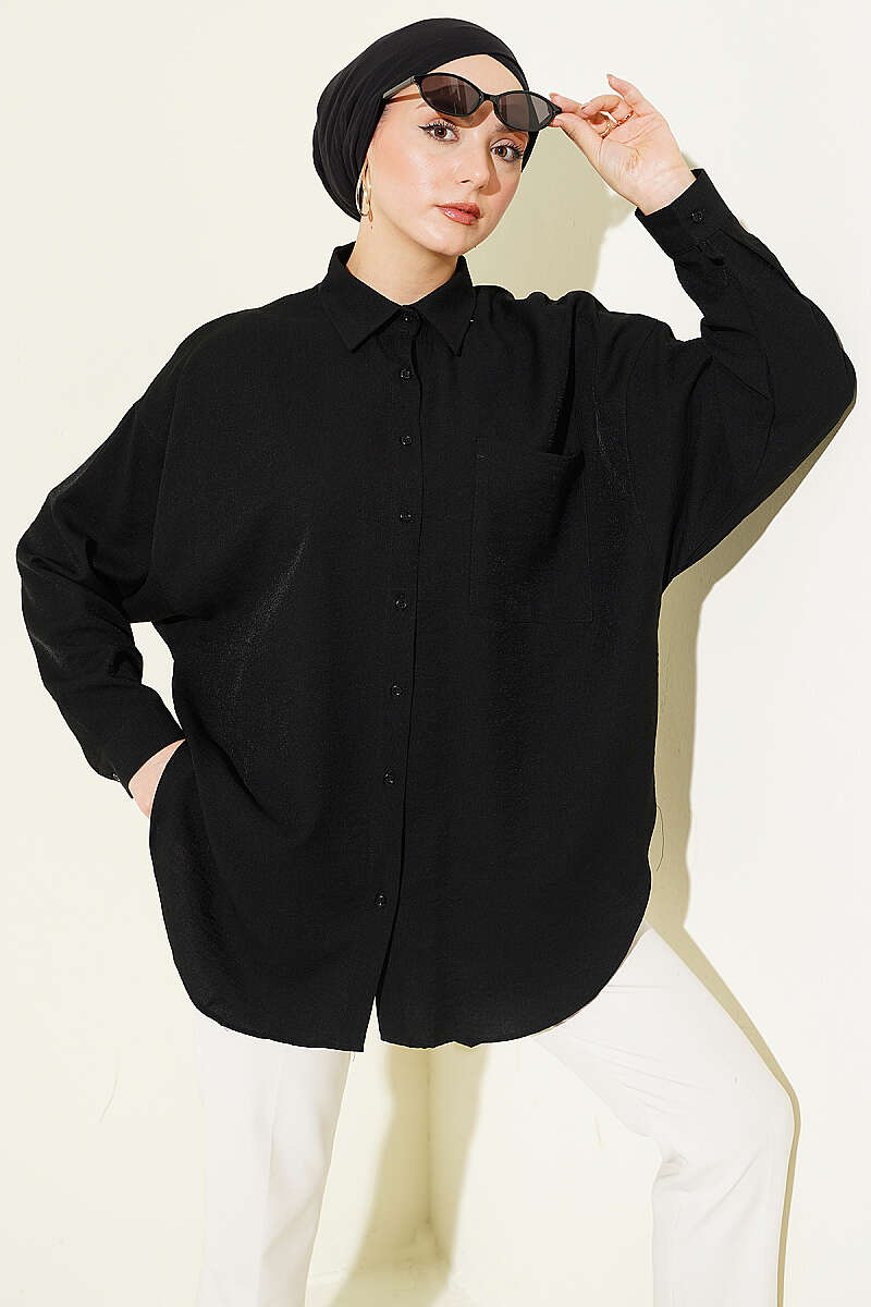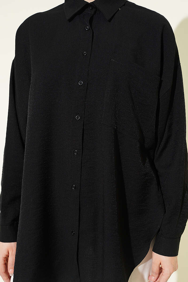 Düşük Omuzlu Tek Cepli Gömlek Siyah