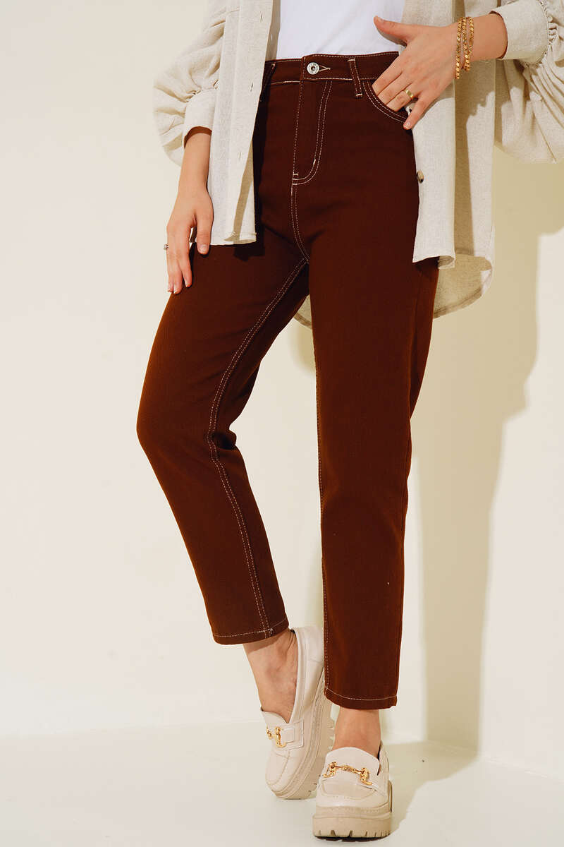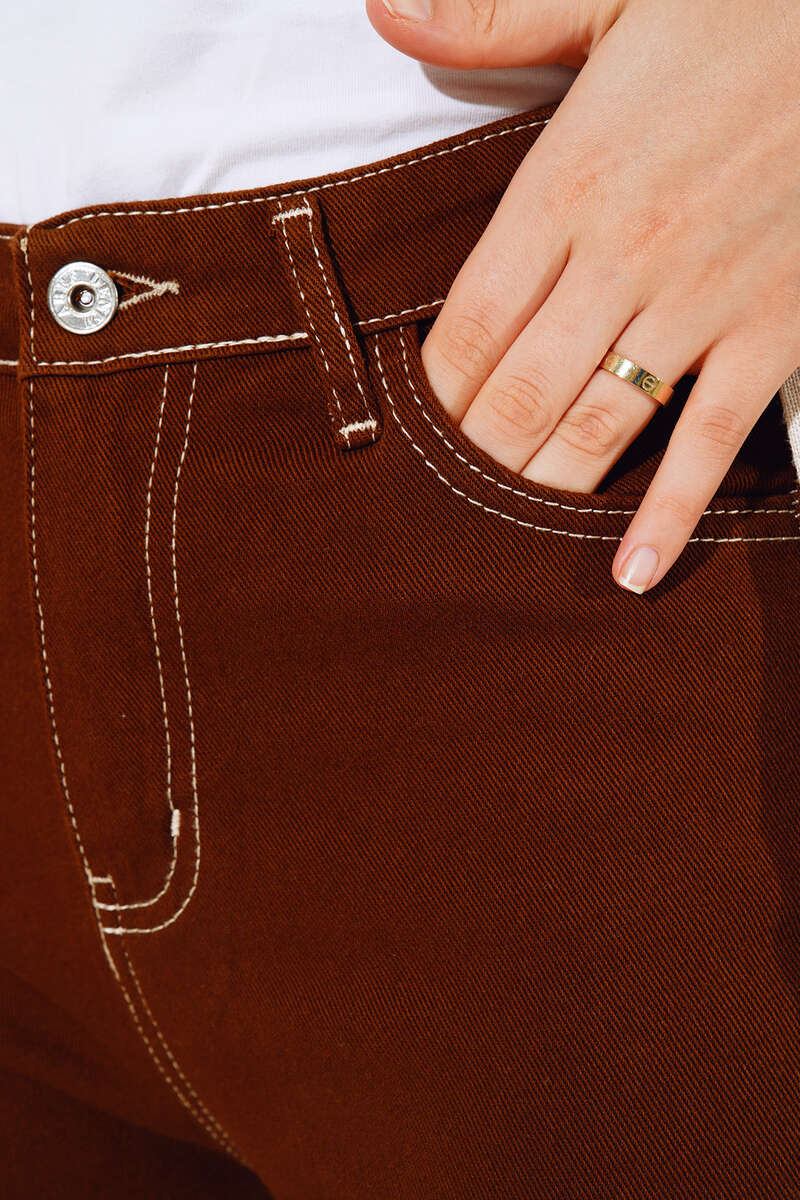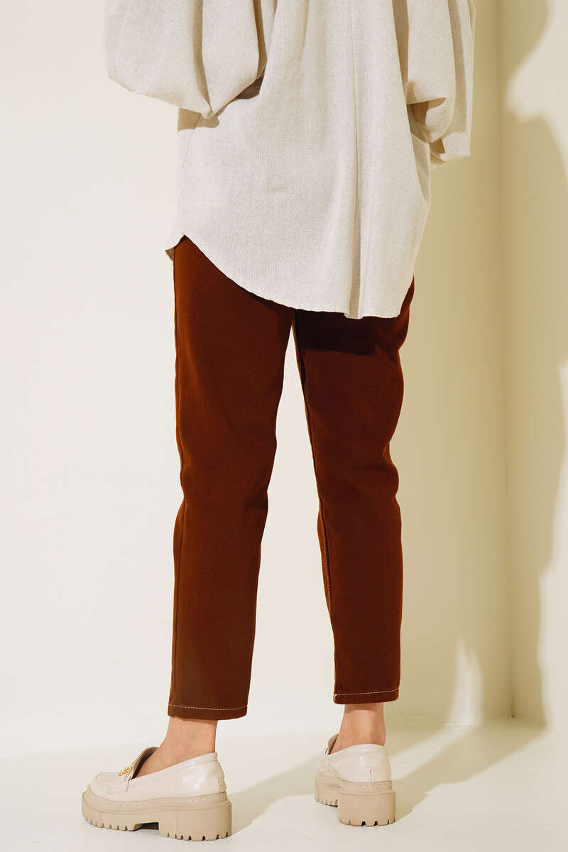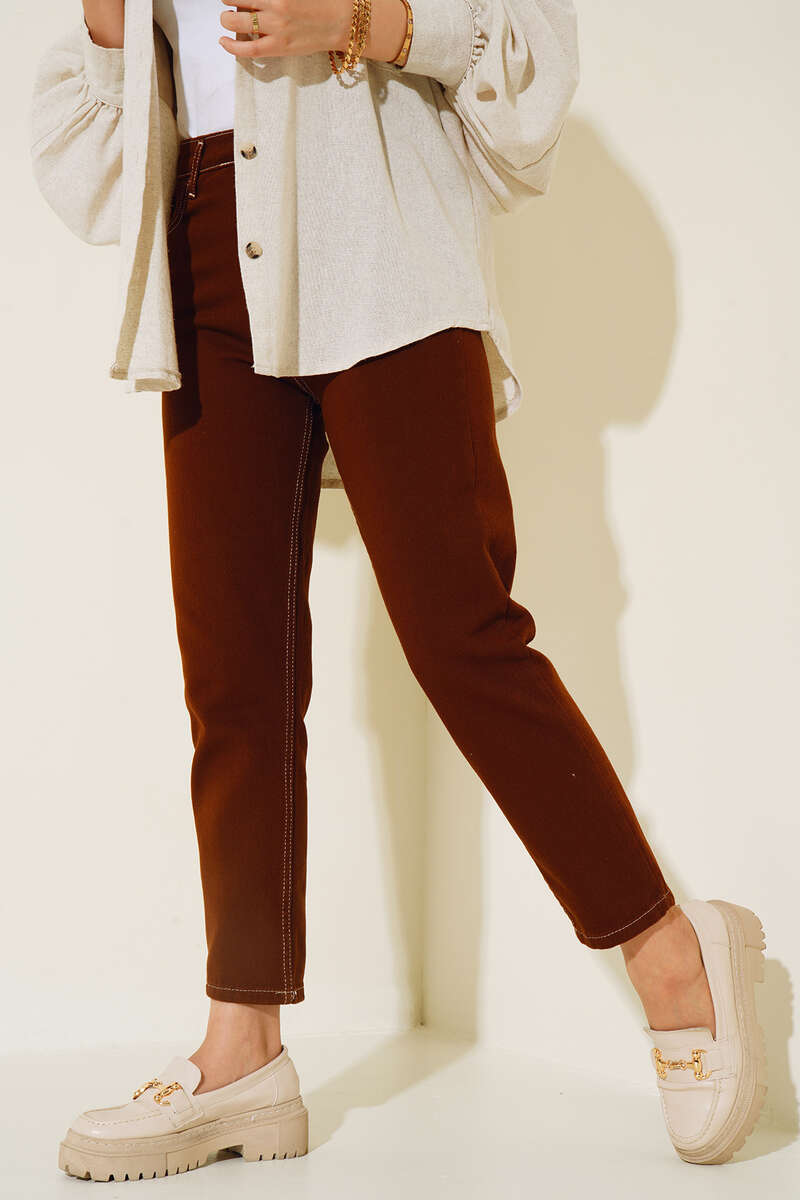 Püsküllü Dar Paça Kot Pantolon Kahve