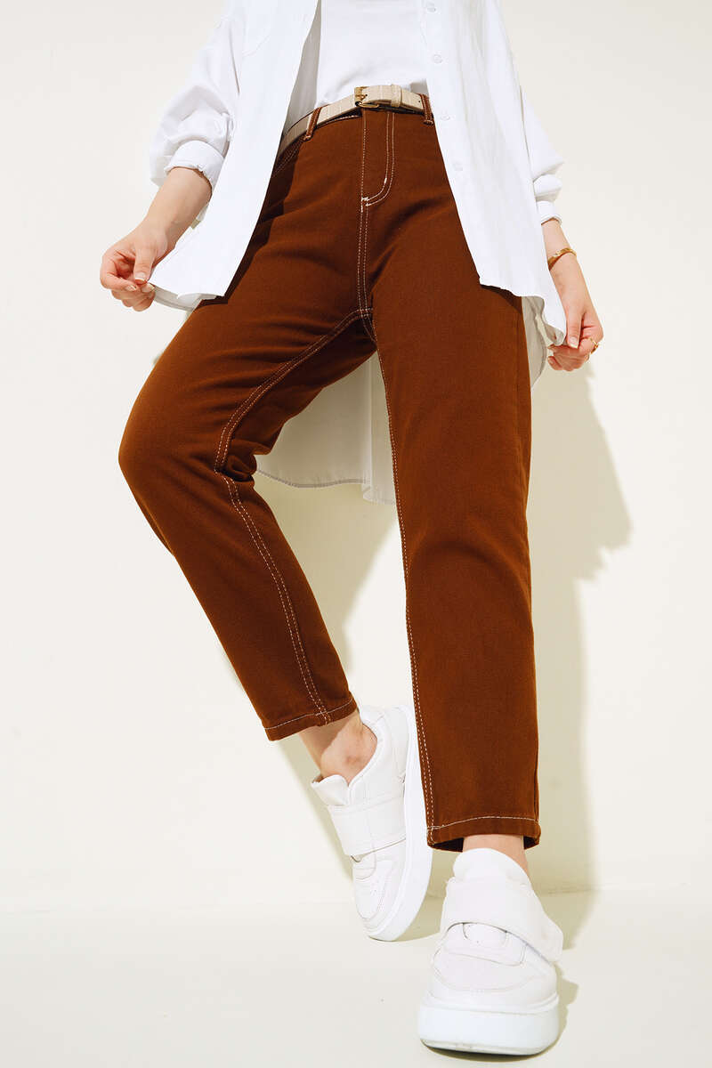 Paçası Yırtmaçlı Scuba Pantolon Kahve