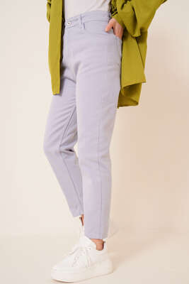 Düz Boyfriend Lila Pantolon