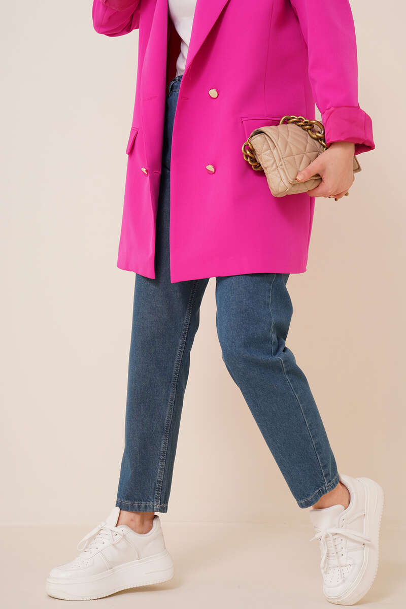 Yeni sezon model pantolonumuz boyfriendir. Pantolonumuz yüksek beldir. Düğmeli ve fermuarlı model olan pantolonumuzun beş adet kemer köprüsü bulunmaktadır.