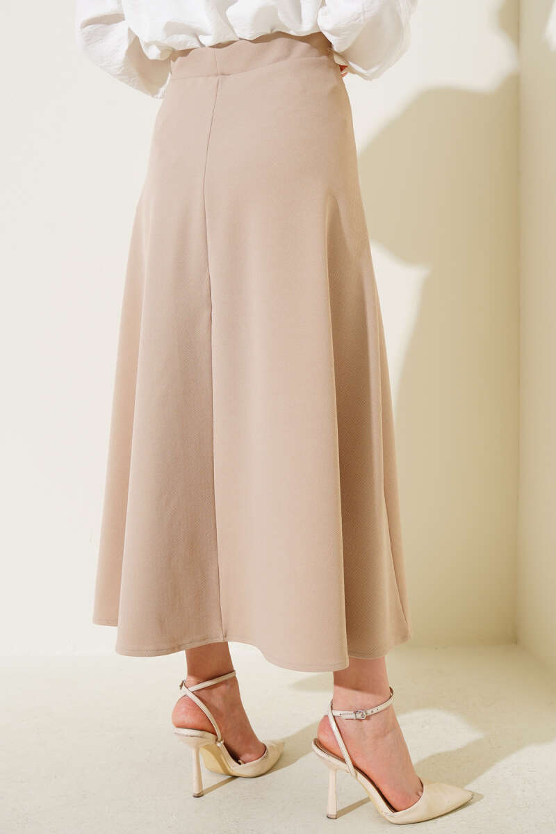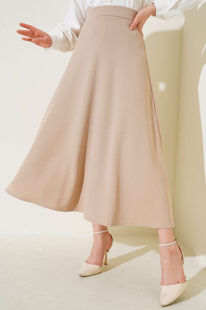 Yeni sezon kloş eteğimiz sizlerle beraber. Eteğimiz kemersiz modeldir. Kloş model olup astarsızdır. Cepsiz modeldir. Kloş eteğimiz kombinlerinizin tamamlayıcısı olacak.