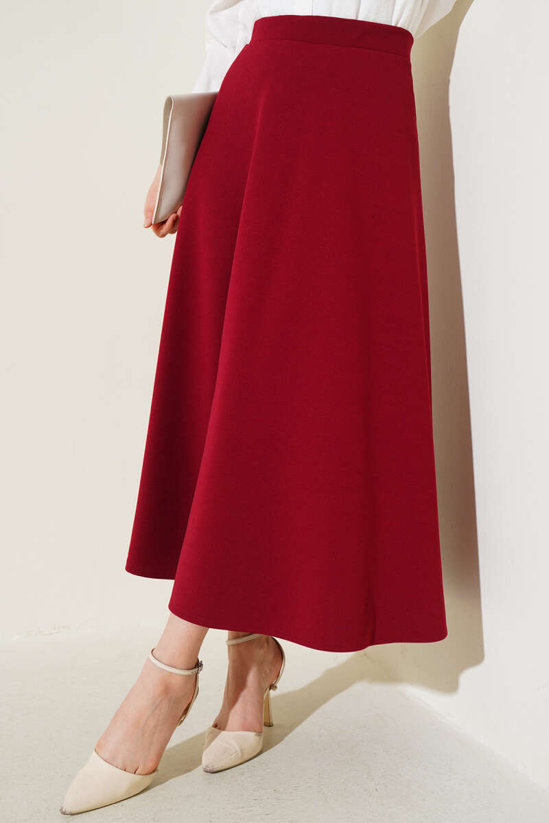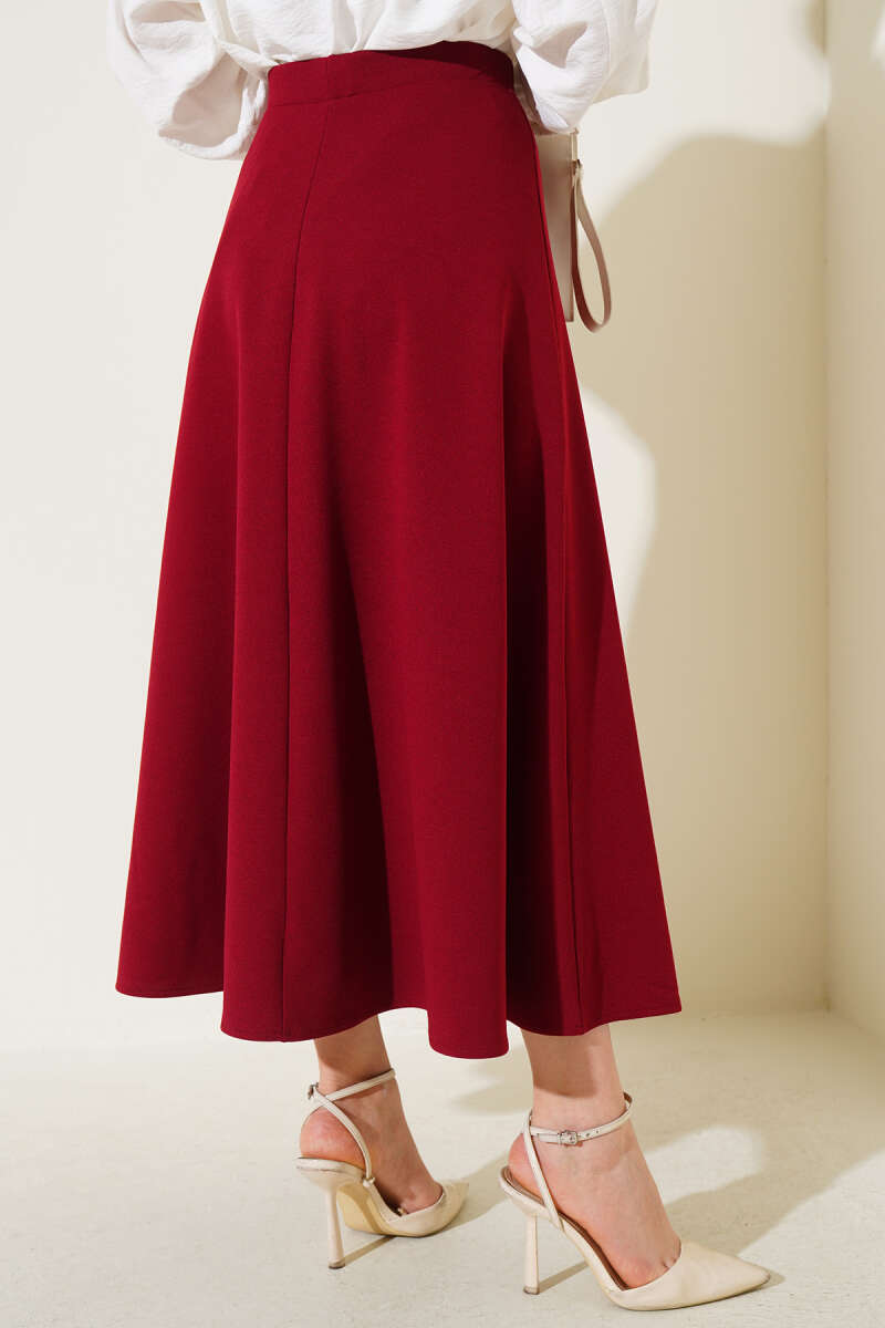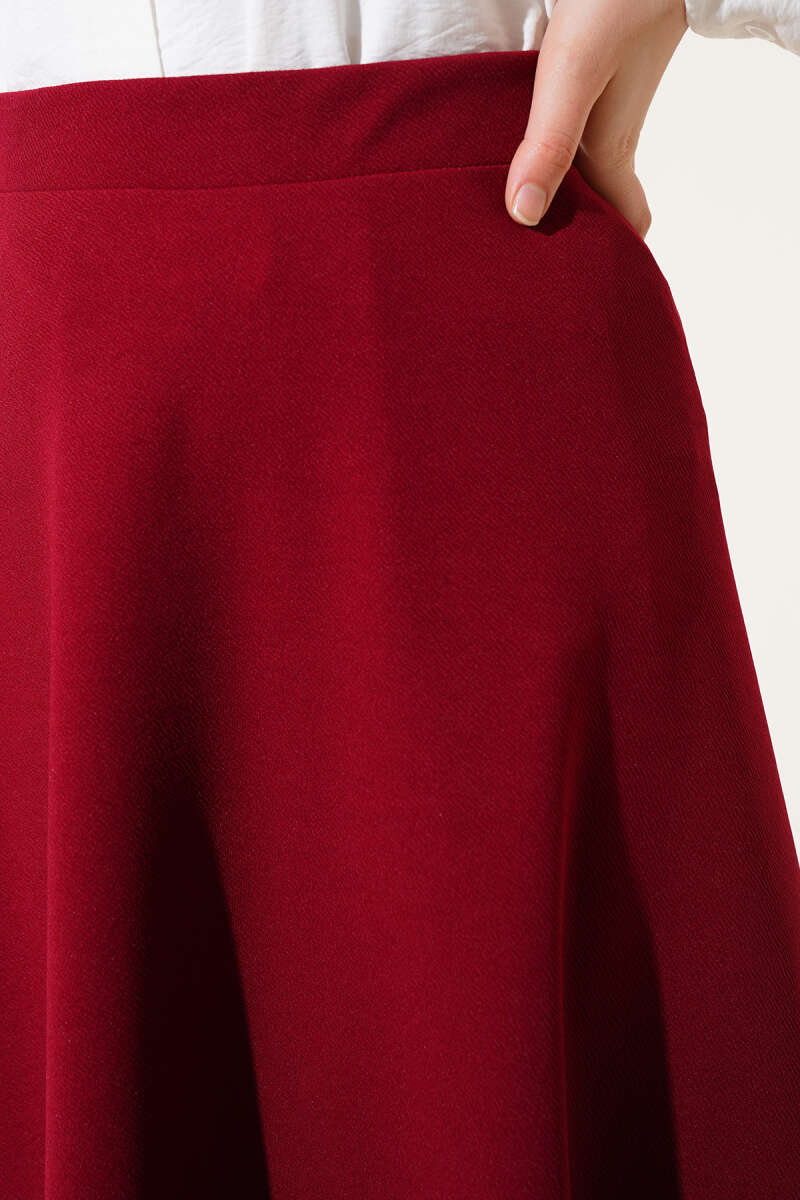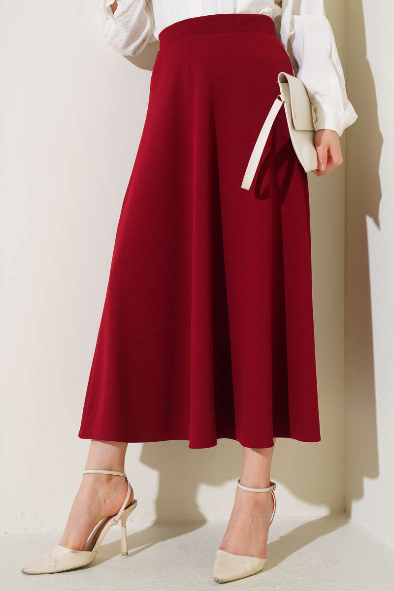 Kemer Aksesuarlı Ekoseli Etek Bordo