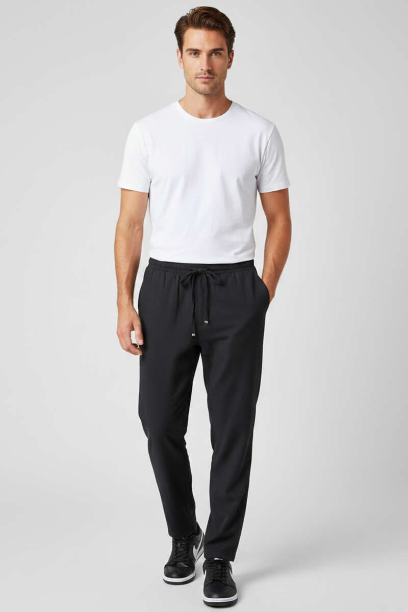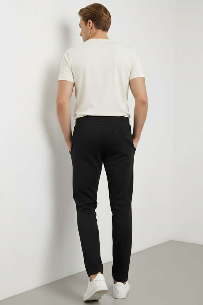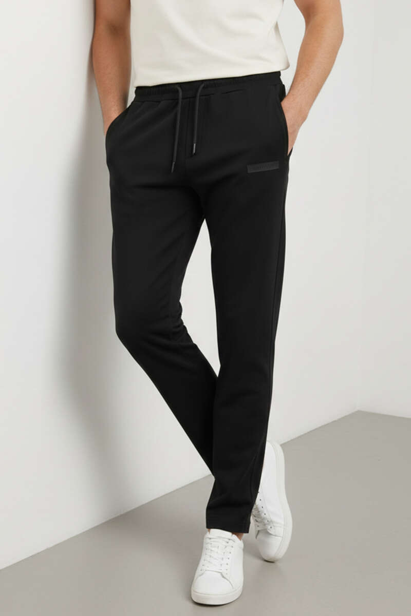 Düz Paça Baskılı Erkek Eşofman Altı Siyah