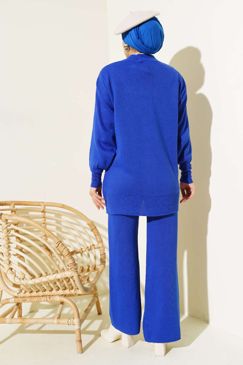 Taşlı Baklava Desen Triko İkili Takım Buz Mavisi