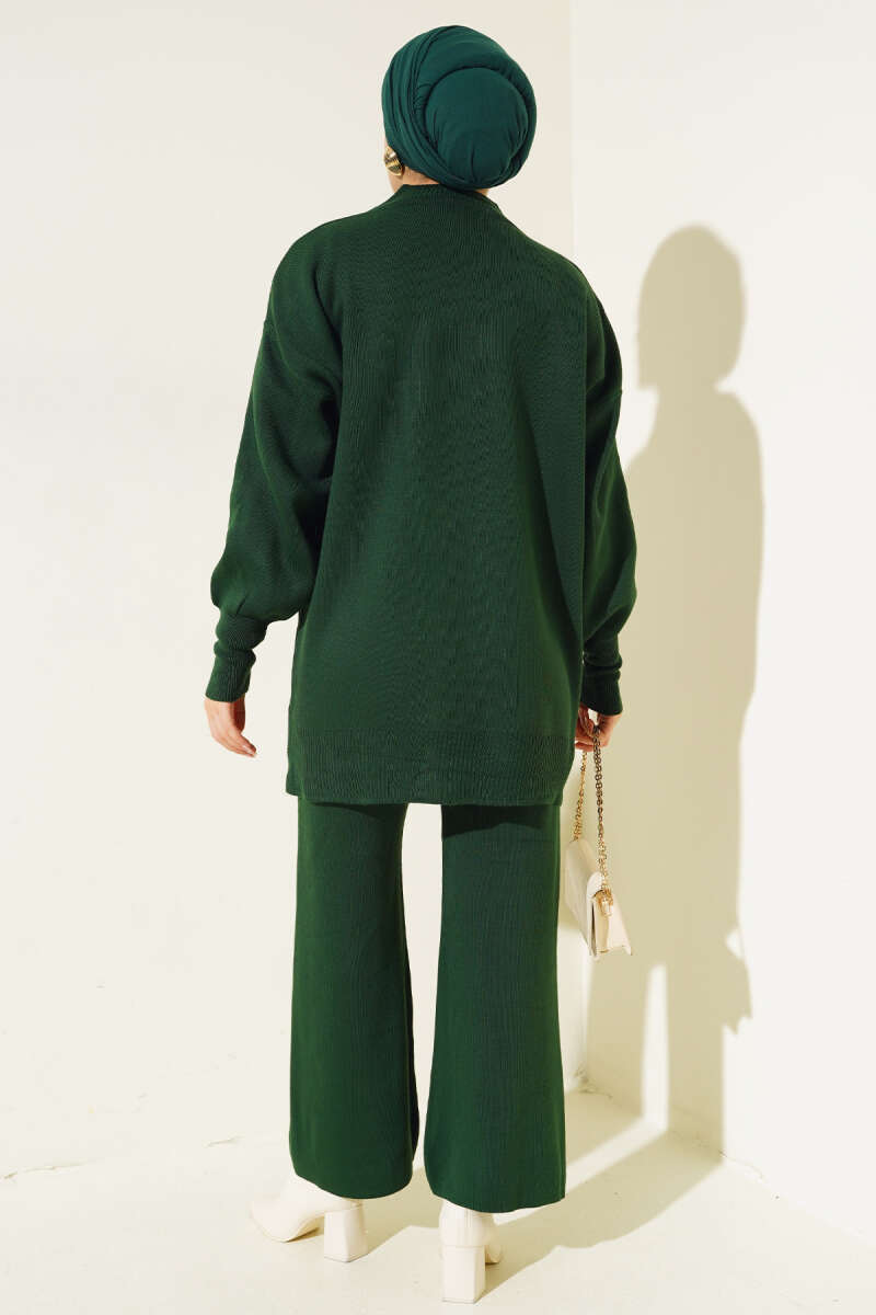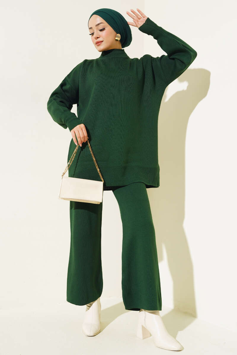 Taşlı Baklava Desen Triko İkili Takım Zümrüt