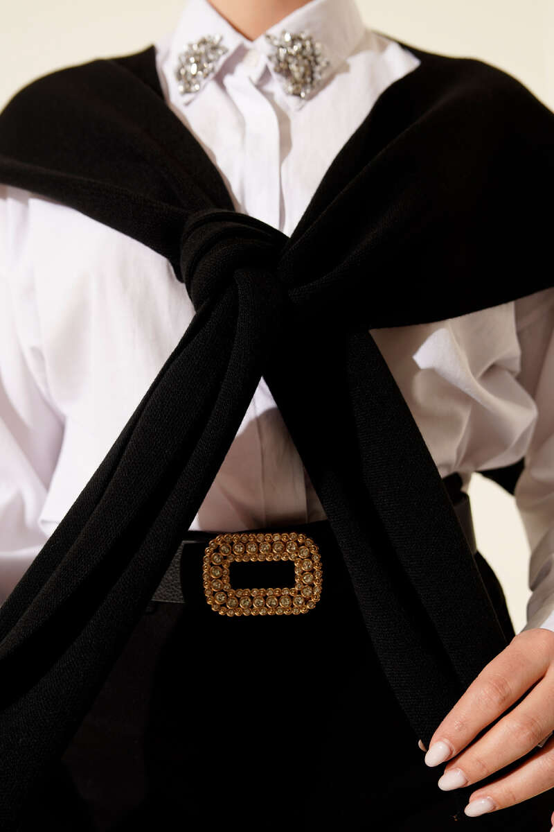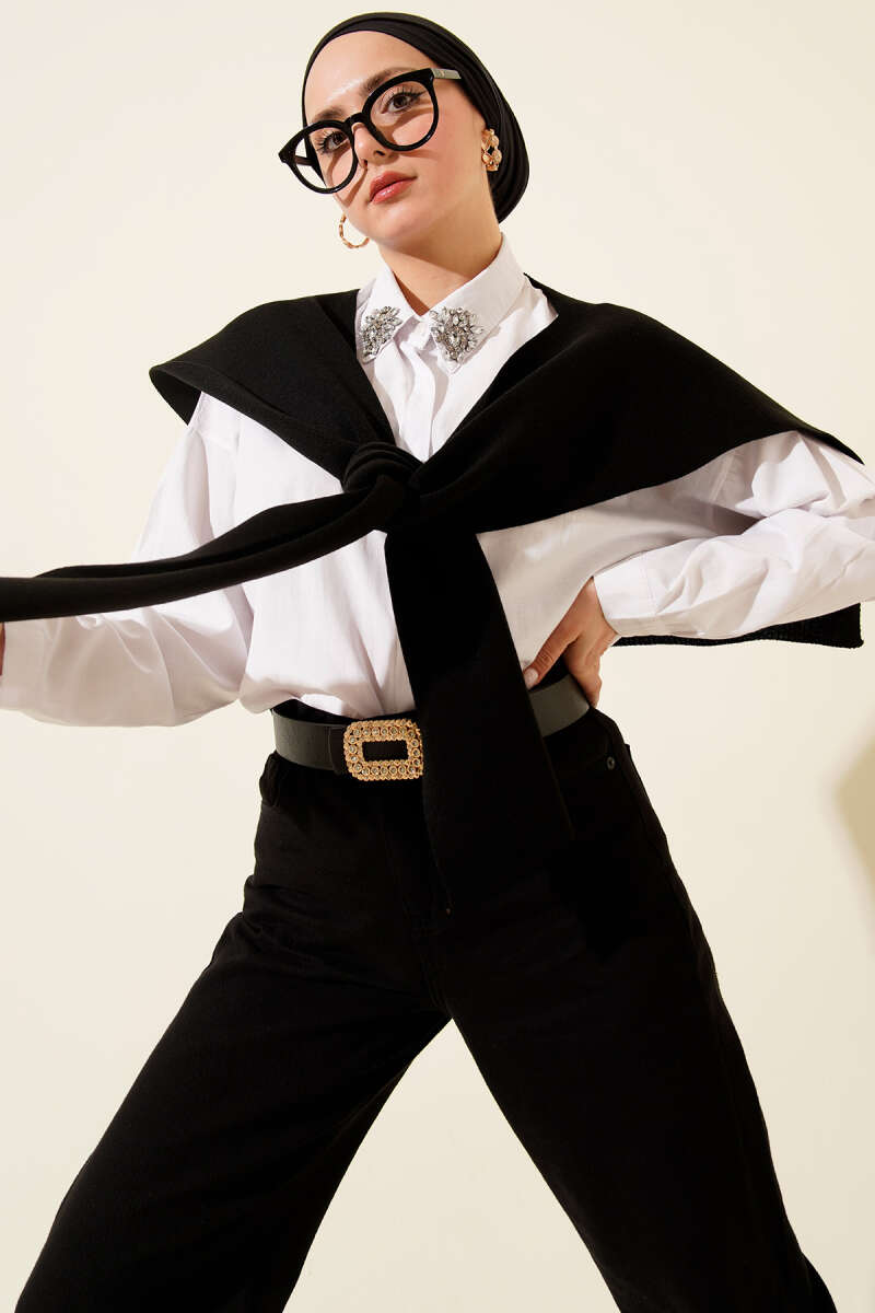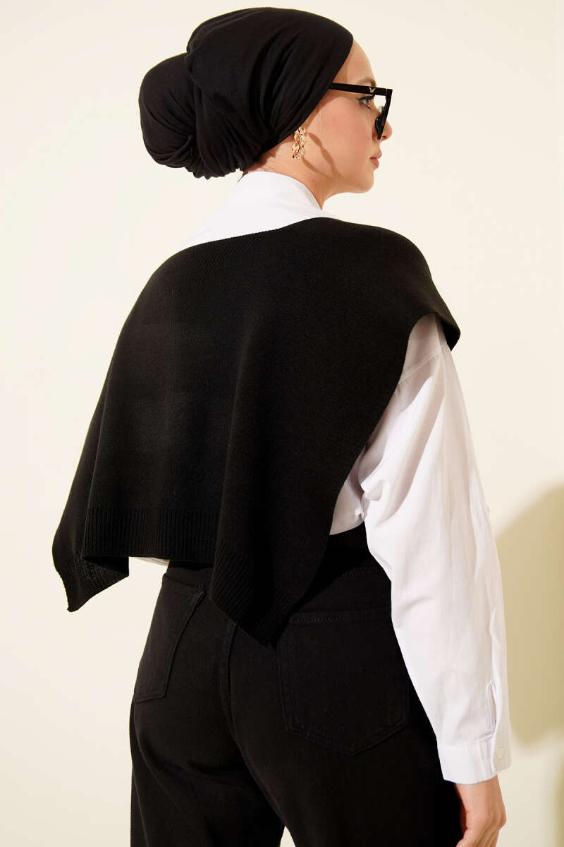 Polar Püsküllü Omuz Şalı Siyah