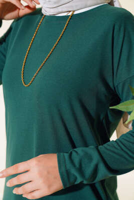 Çizgi Baklava Desen Triko Tunik Yağ Yeşili