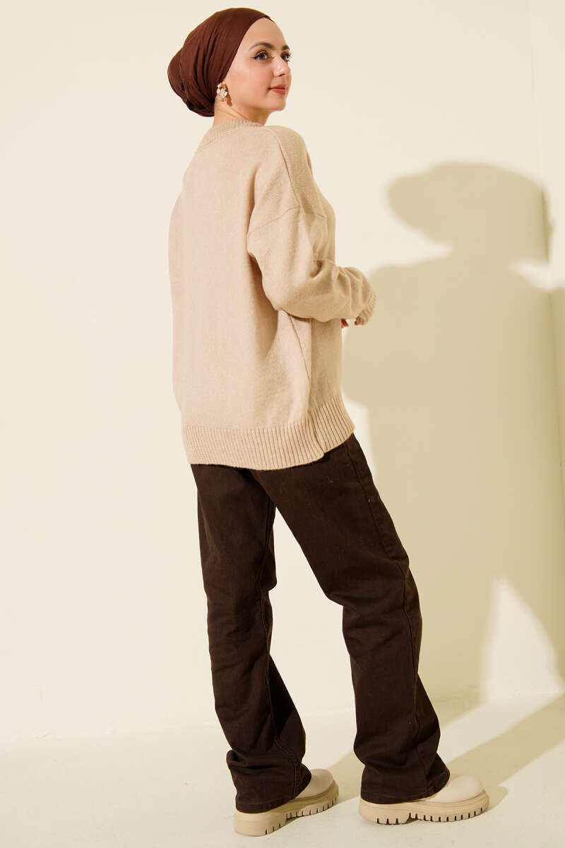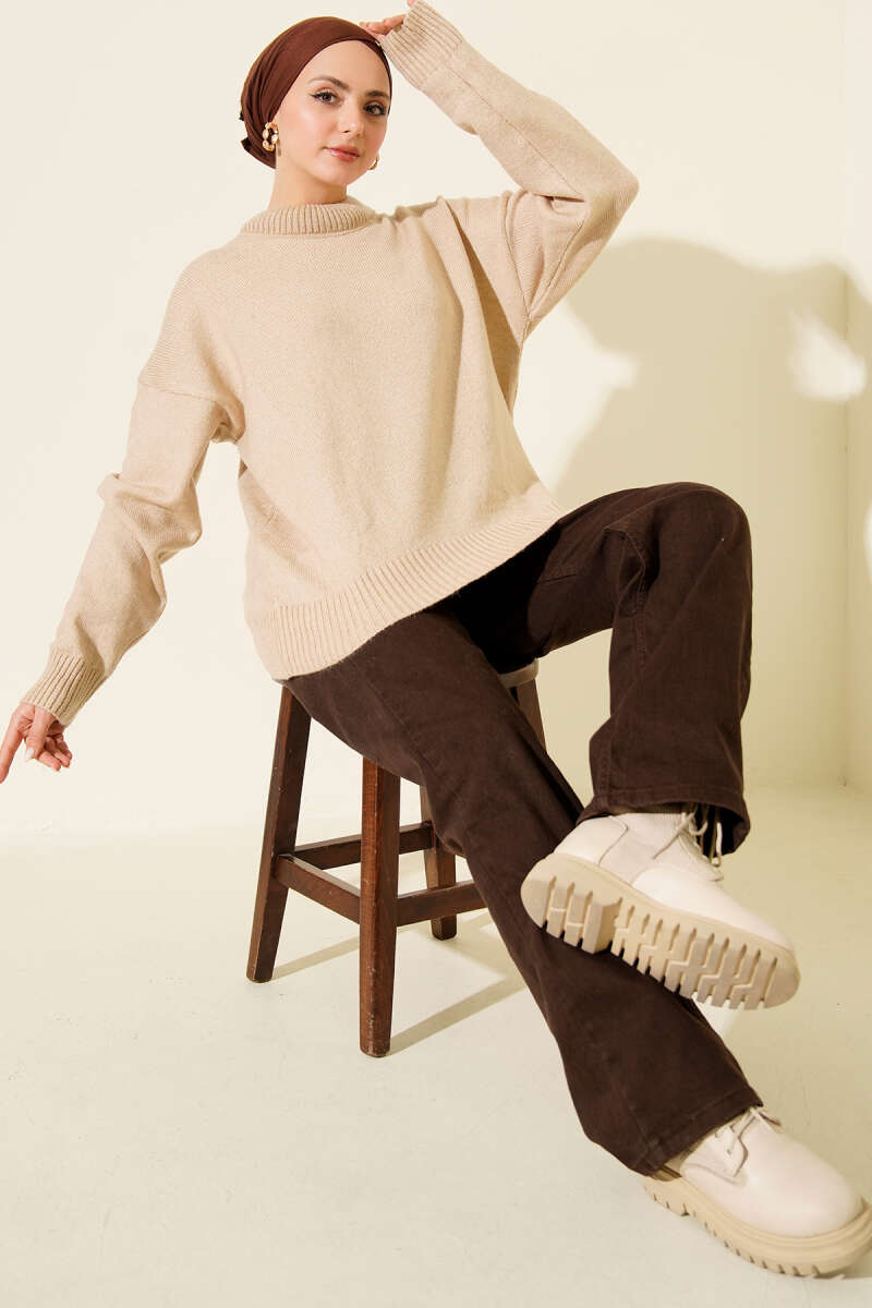 Örme Triko Kazak Vizon
