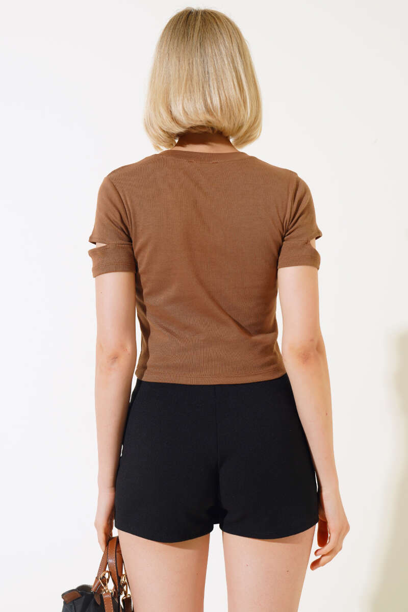 Bilek Kürklü Çıtçıtlı Body Kahve