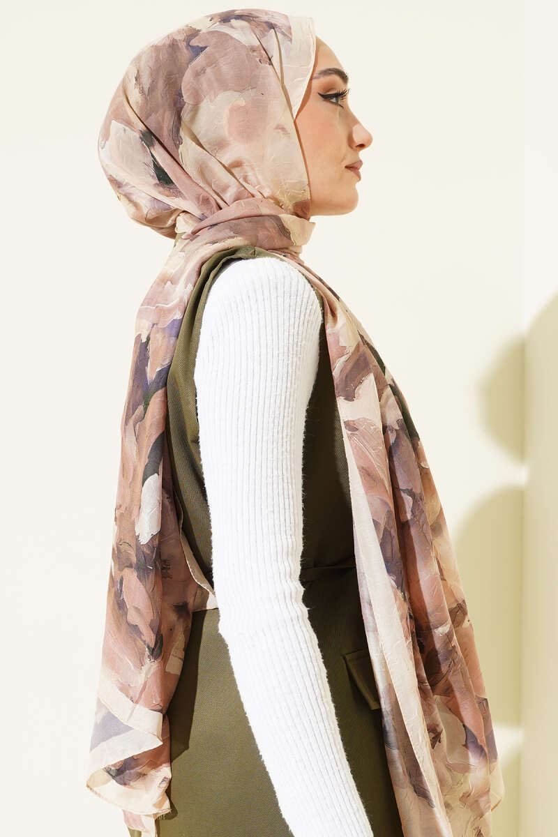 Şerit Geçişli Desenli Bambu Eşarp Soft Kahve