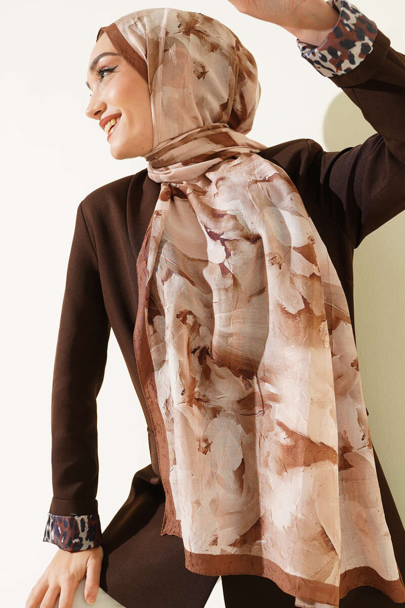 Retro Desenli Bambu Kraş Şal Acı Kahve