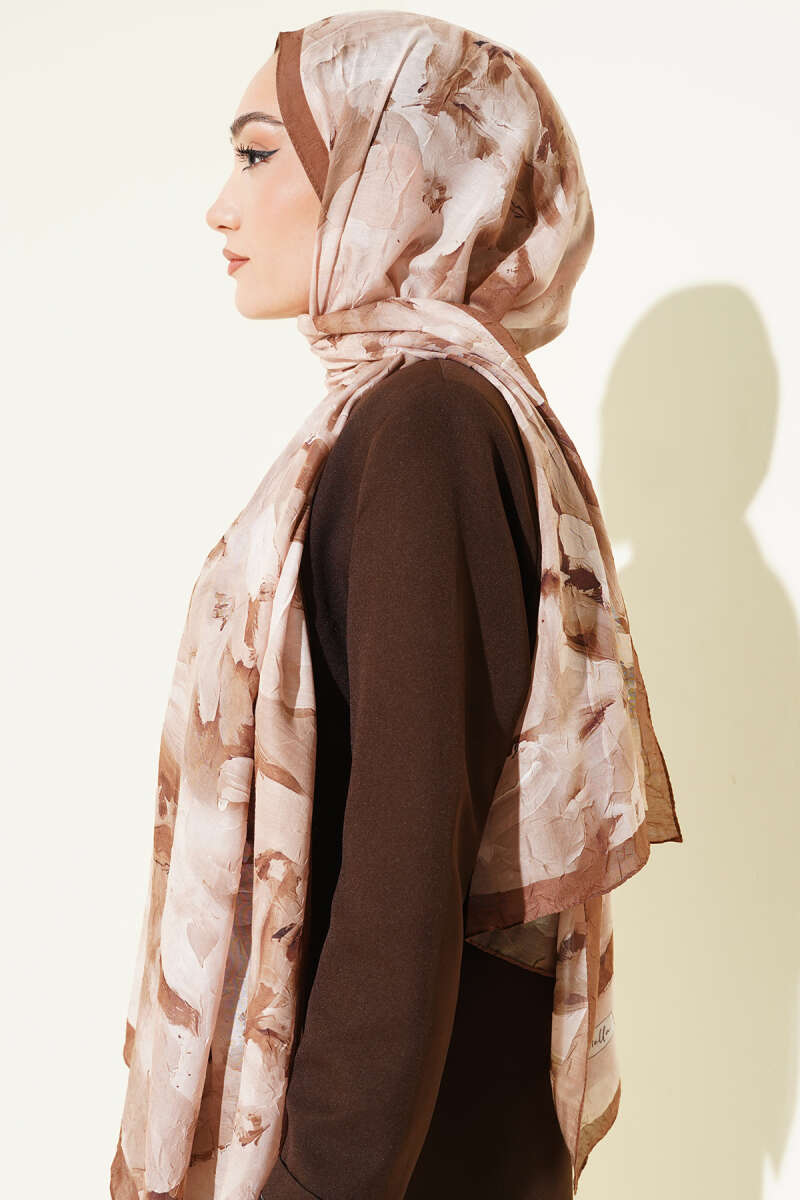 Şerit Geçişli Desenli Bambu Eşarp Soft Kahve