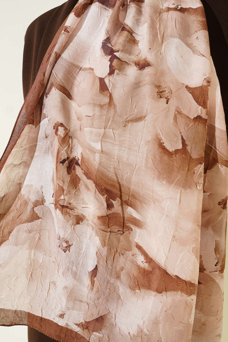 Şerit Geçişli Desenli Bambu Eşarp Kahve