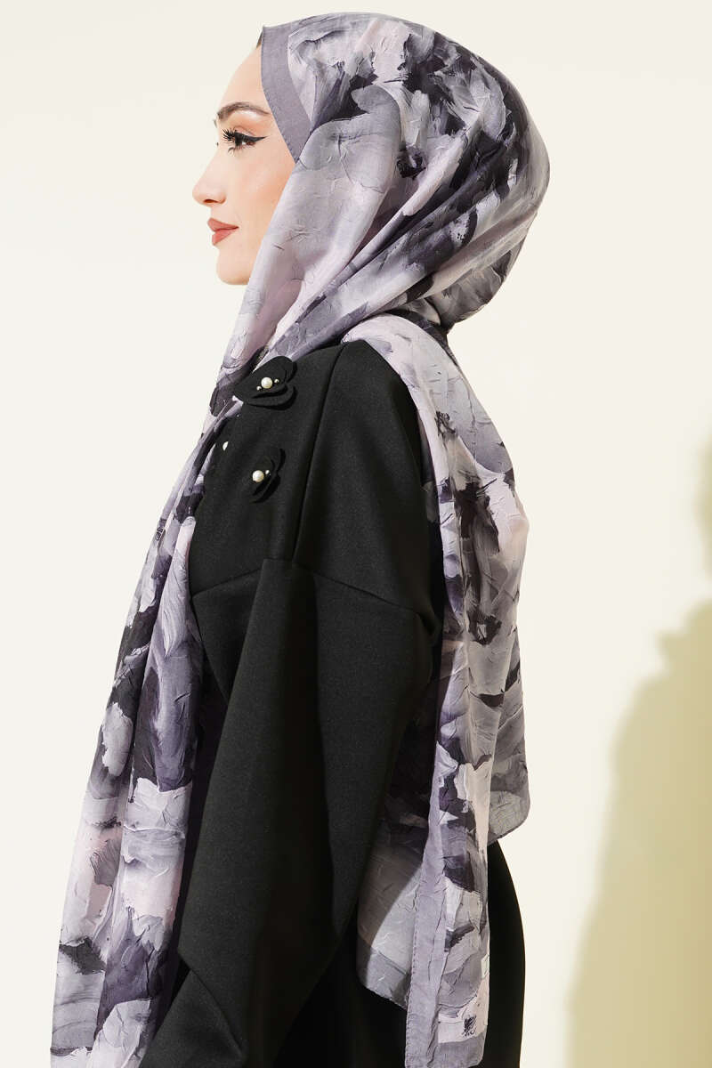 120 cm Sarmal Ebruli Eşarp Gri
