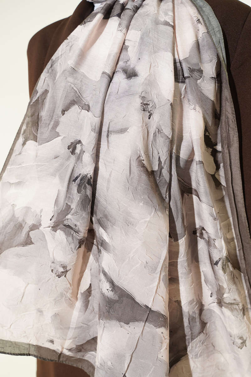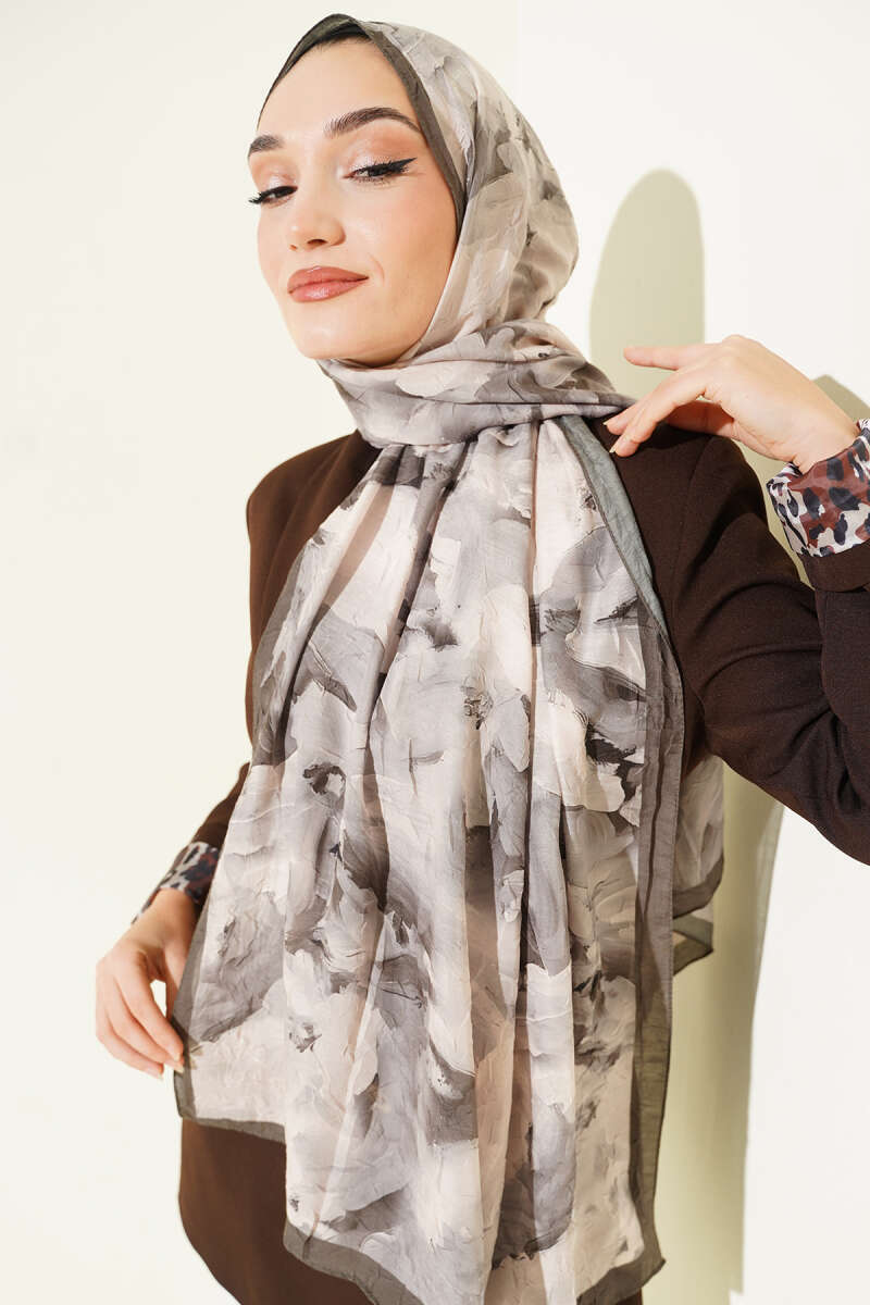 Ebru Desenli Bambu Kraş Şal Haki