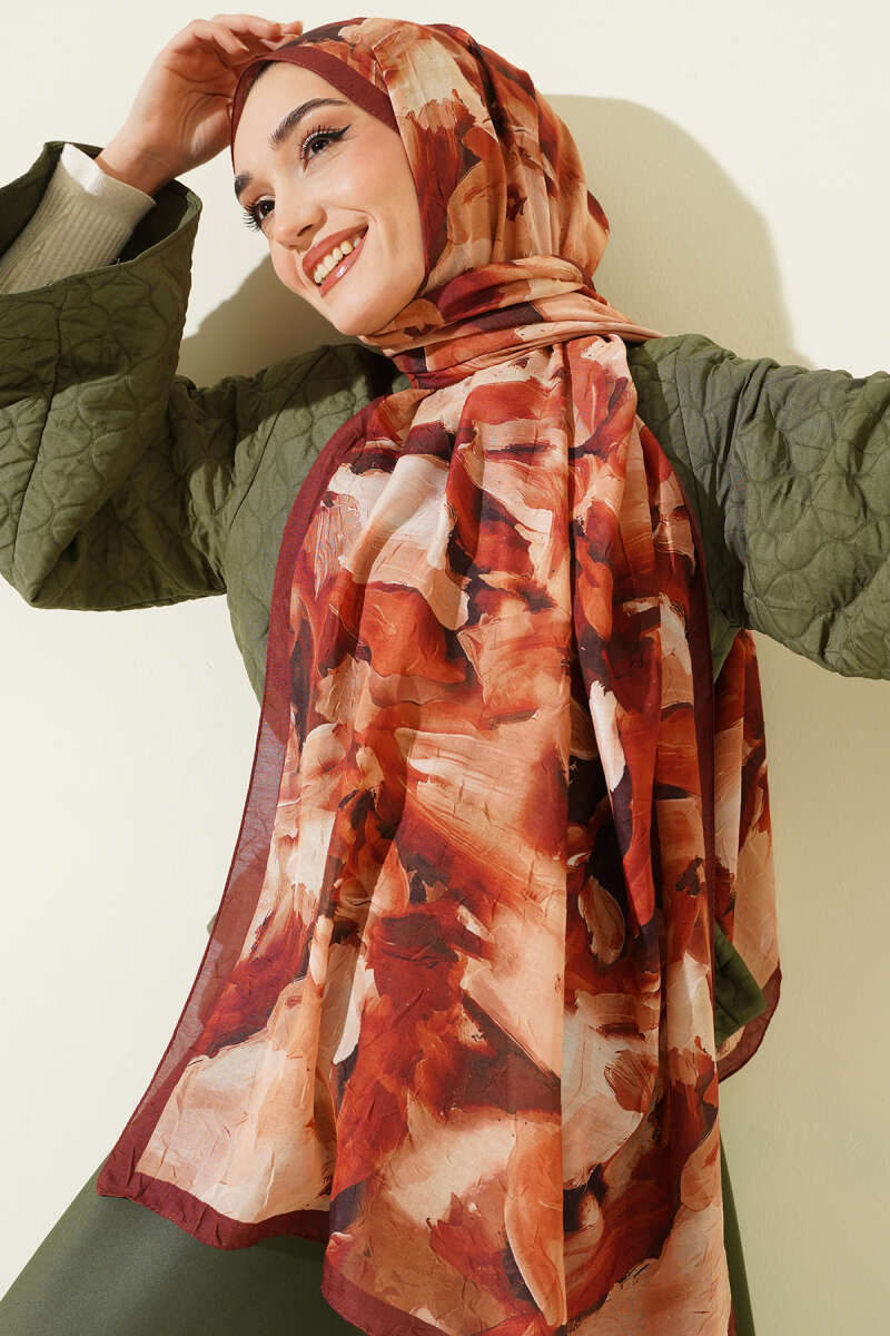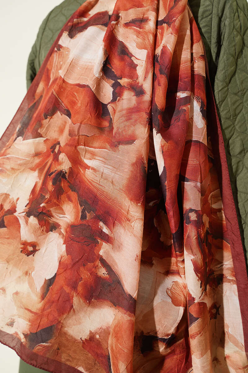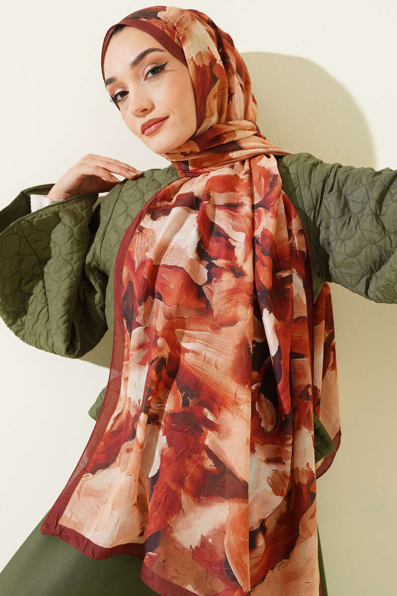 Şerit Geçişli Desenli Bambu Eşarp Kestane