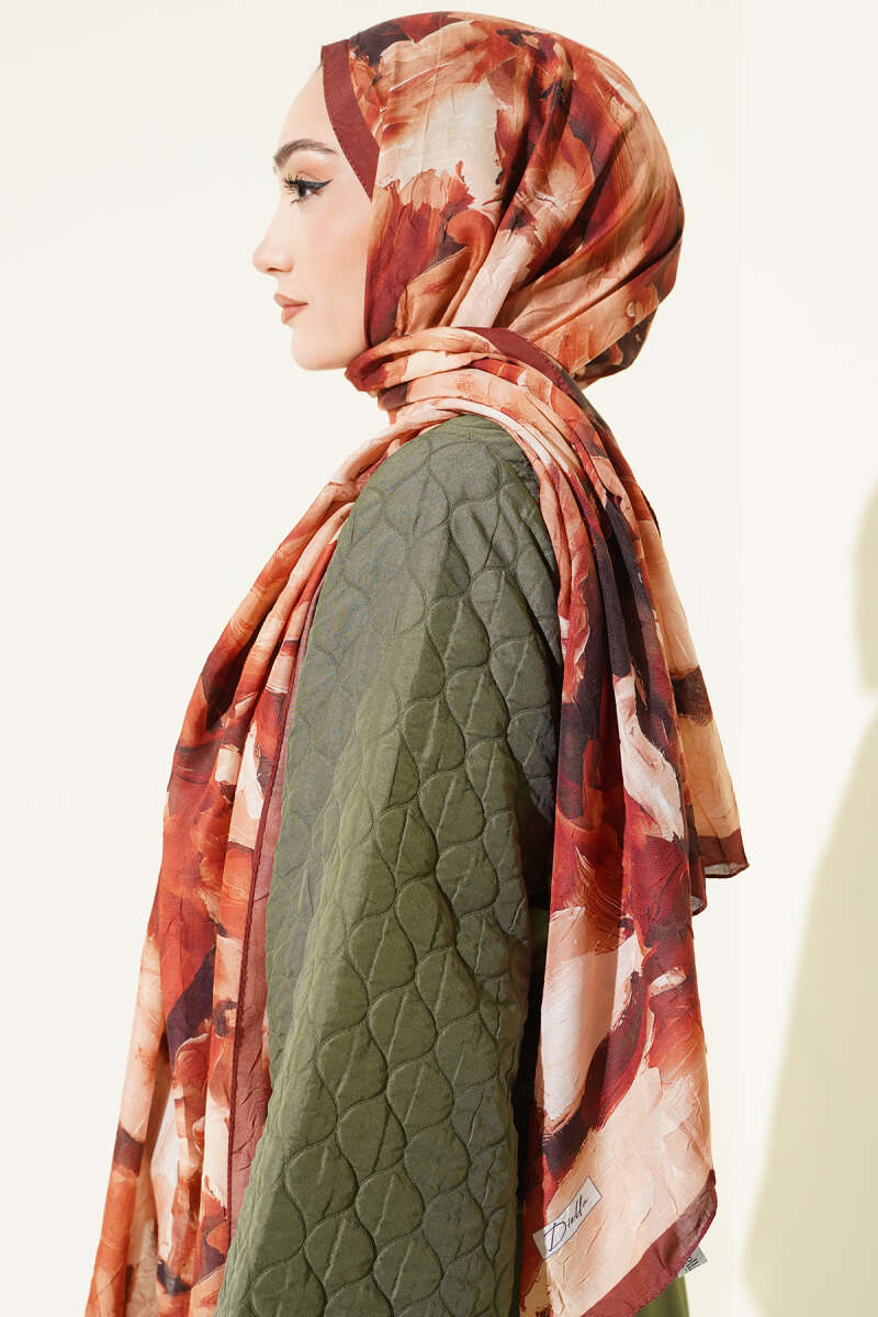 Şerit Geçişli Desenli Bambu Eşarp Toprak