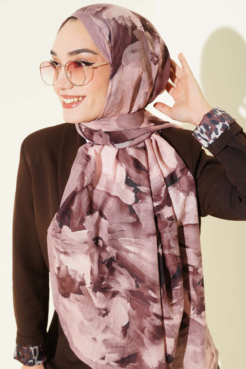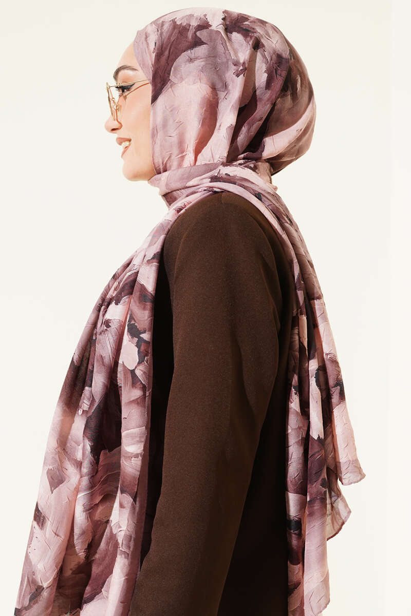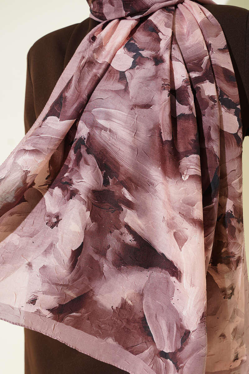 Ebru Desenli Bambu Kraş Şal Latte
