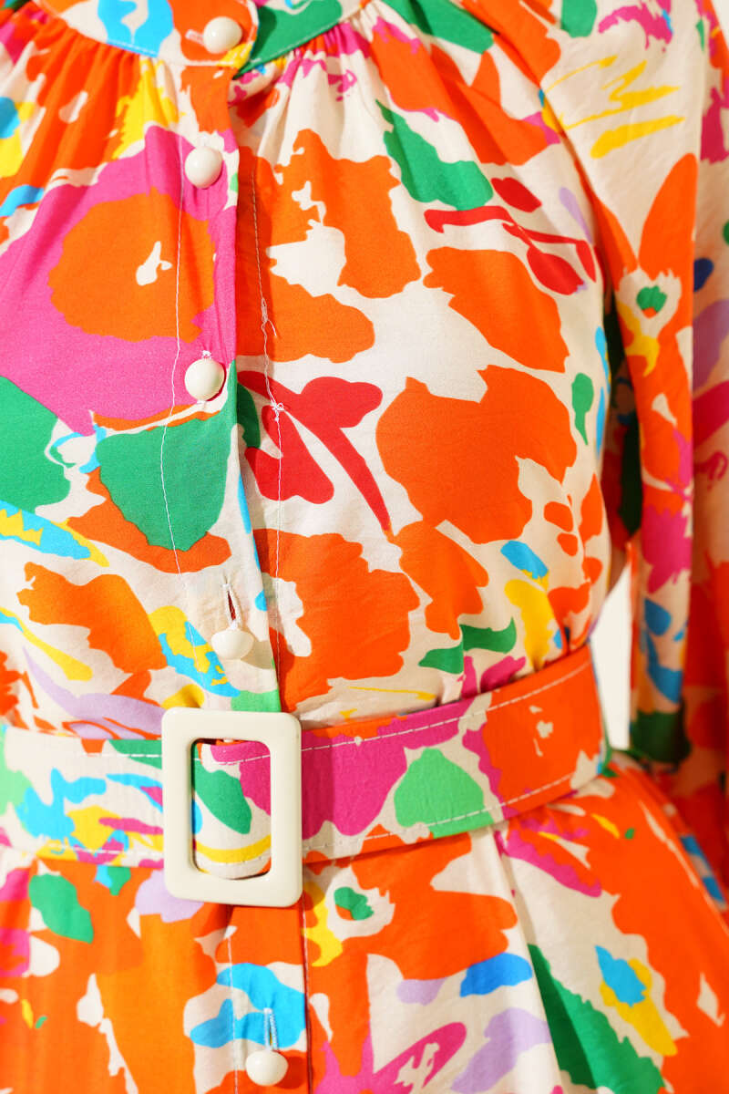 Karışık Desen Kat Salaş Elbise Bej Lacivert