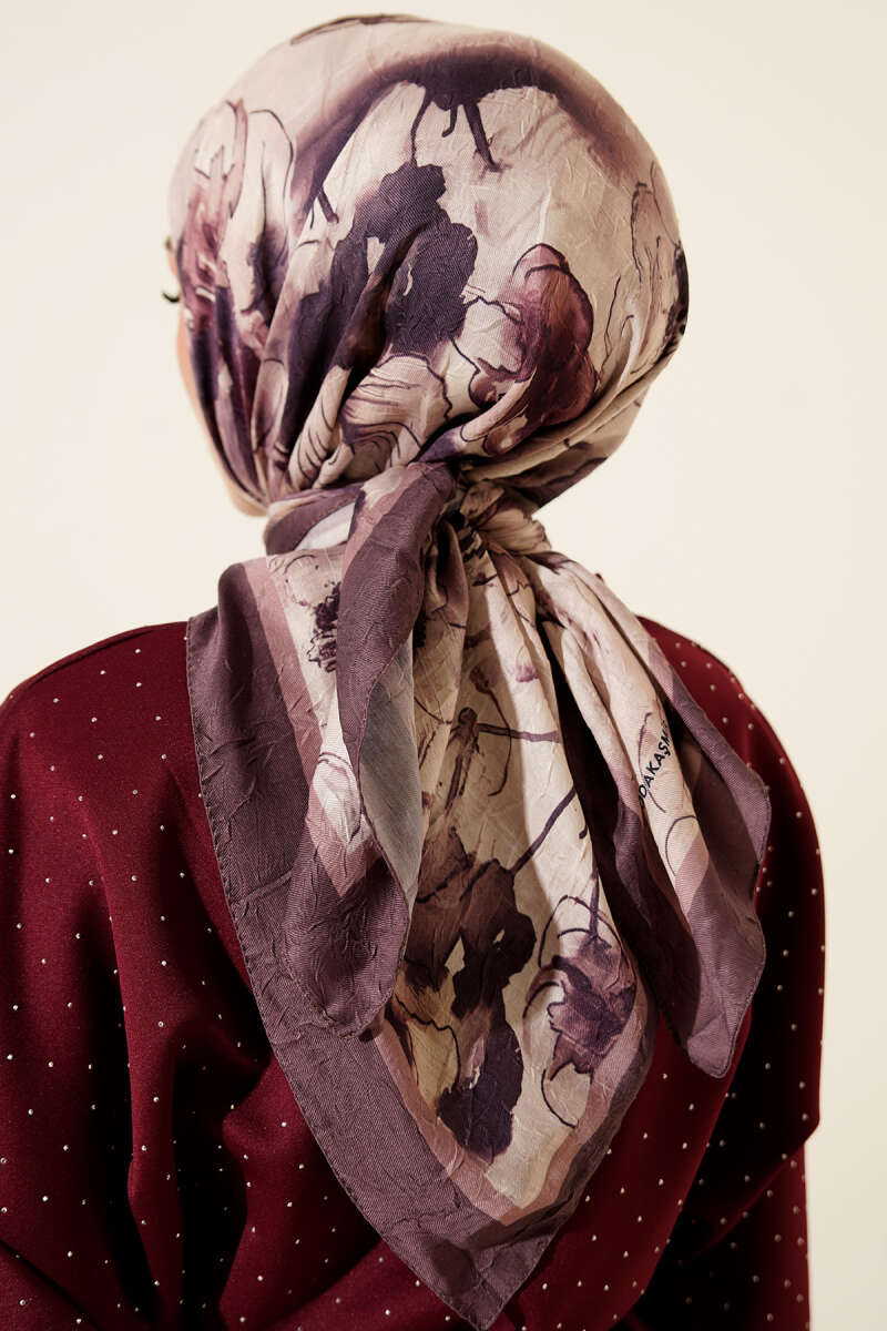 Ebruli Çiçekli Bambu Kraş Eşarp Kahve