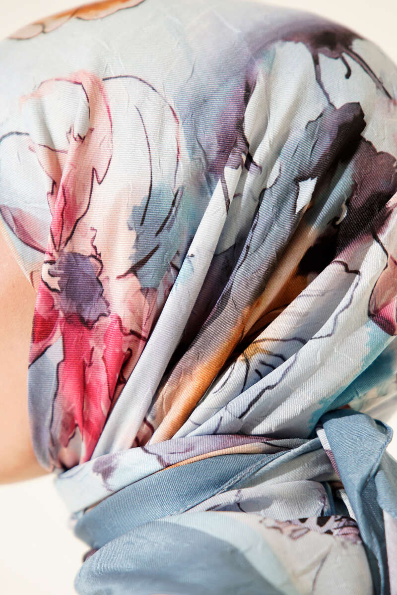 Ebruli Çiçekli Bambu Kraş Eşarp Taba